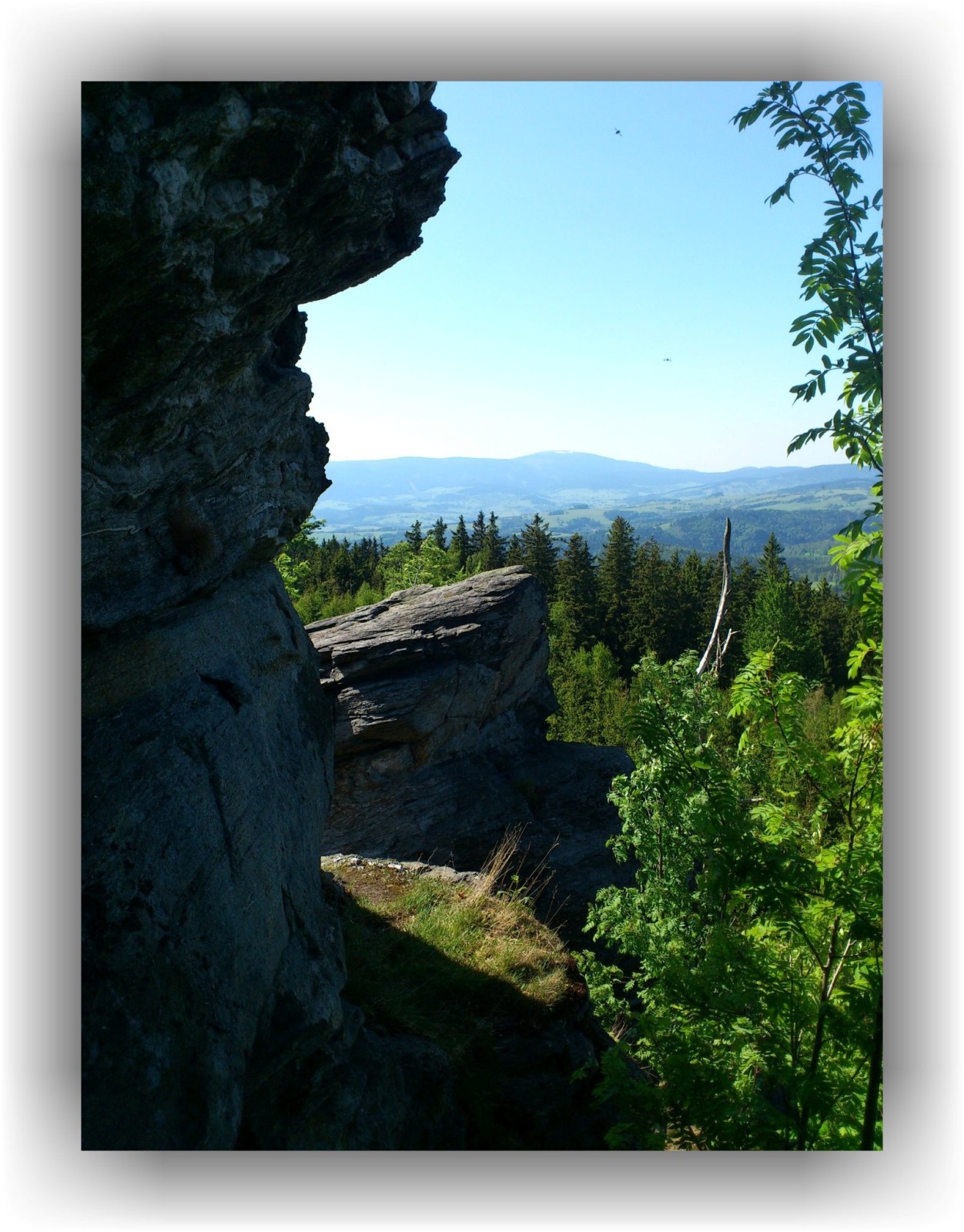 Místo dalekého rozhledu se skalními útvary, vyhlídka na Přemyslovské sedlo