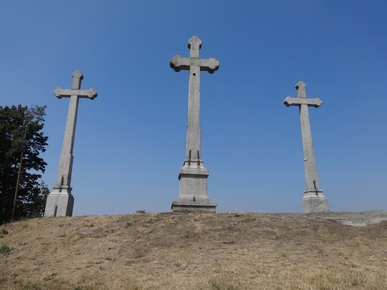 Stávající tři kříže na kopci Kaplisko či Kalvárie byly vztyčeny na původních kamenných podstavcích v roce 1832.