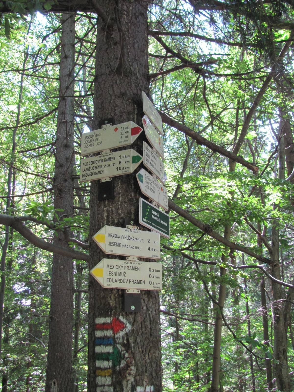 Cestu na rozhlednu Zlatý chlum lze zpestřit malou zacházkou po žluté značce ke třem pramenům.Ten nejsilnější a nacházející se nejblíže rozcestí se jmenuje Mexický. Jak je možno si přečíst na pamětní desce, byl opraven v roce 2001 městem Jeseník za finanční pomoci konzulátu ČR v Mexiku, občanů města Monterrey ve státě Nuevo Leon - Mexiko a Ministerstva pro místní rozvoj ČR. Po dvoustech metrech chůze lesní pešinou se dá dojít k prameni Lesní muž a celou cca 600 metrovou procházku lze zakončit u Eduardova pramene. Před Eduardovým pramenem je malá mýtiná odkud je krásný výhled na Šerák a Keprník.