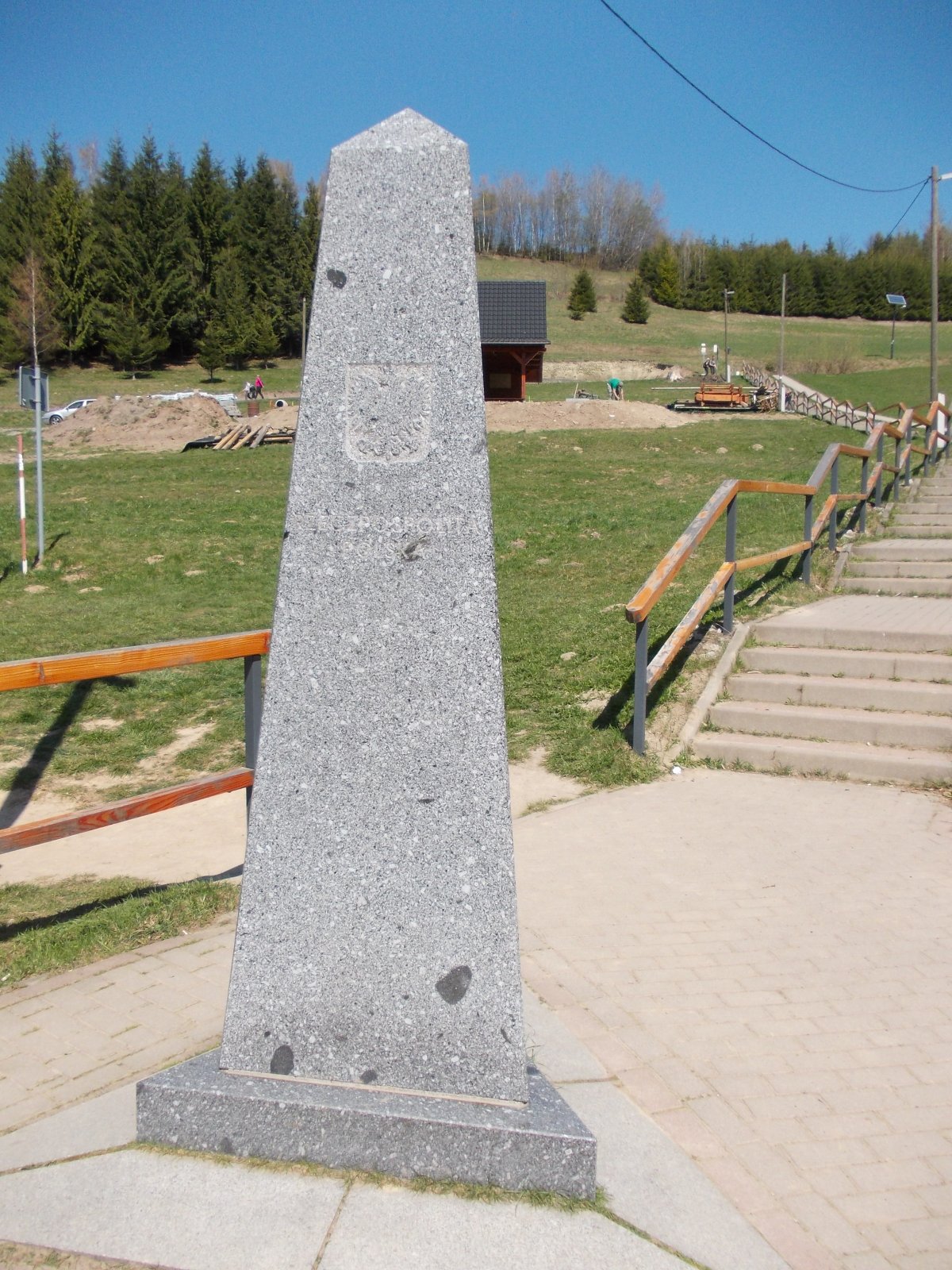 Na trojmedzí poliaci budujú veľkú chatu, buduje sa aj drevenica s občerstvením a WC. Vo veľkom altánku sa nachádzajú lavice aj ohnisko. Na jednej strane - poľsko českej je český a poľský monolit. V potoku sa nachádza malý monolit - to je miesto kde sa stretáva hranica troch štátov. Aké bolo naše prekvapenie, že cez potok chýba most. Stál tu drevený most, ktorý je v rekonštrukcii. Čo sa s pôvodnym mostom stalo, neviem. Možno len už doslúžil a nebol v stave zdolávať nápor turistov. Za potokom sa nachádza už slovenská strana. Tu sa nachádza tretí monolit, tentokrát so slovenským znakom. Aj na slovenskej strane je veľký prístrešok. Jedna rodina si v krbe opekala špekáčky. Nachádza sa tu aj ďalší drevený altánok so stolom a lavicami. Z infopanelov sme sa dozvedeli, že na Slovensku sú ešte ďalšie štyri rozmedzia.