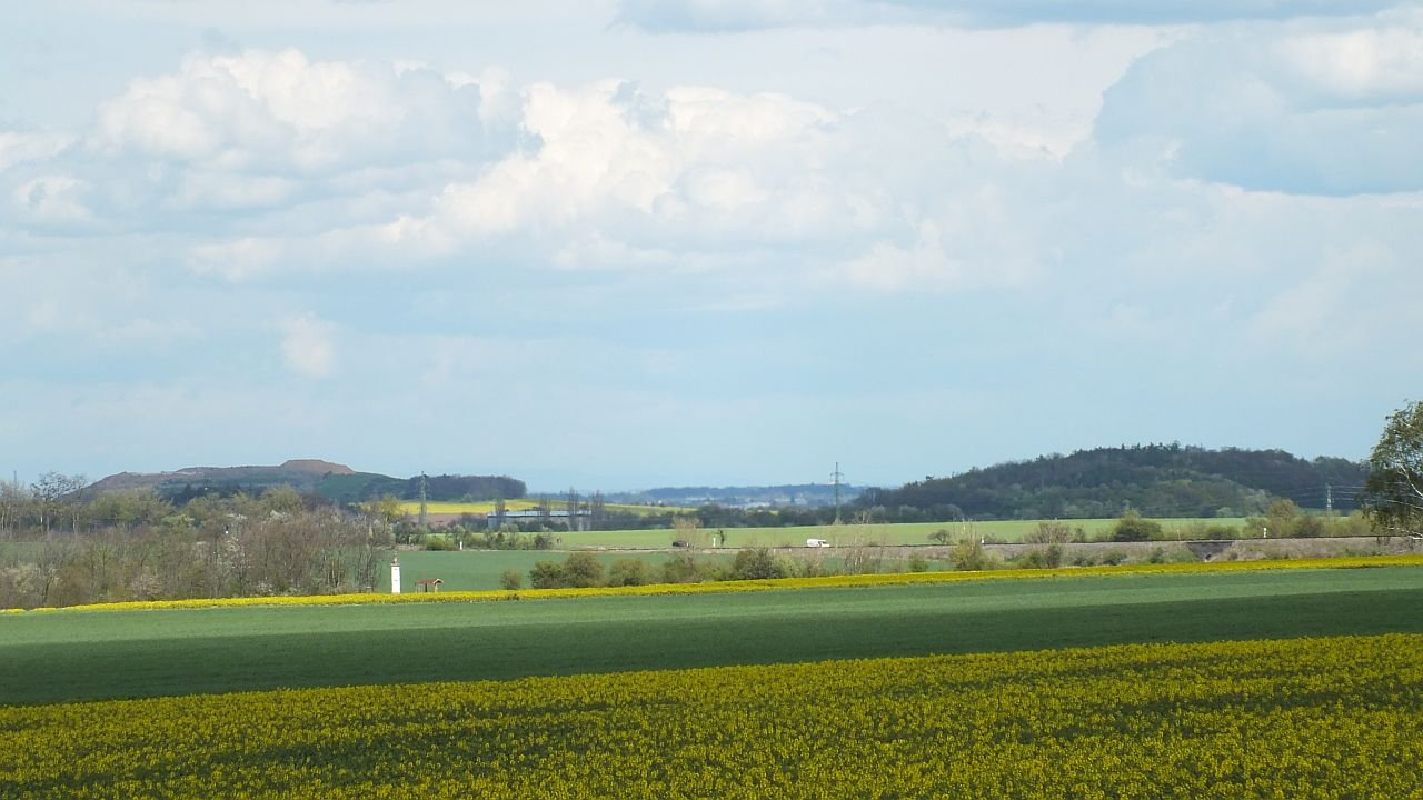 Na Skalicích, výhled na sever, osada Pazderna, v pozadí vlevo Říp, vpravo Ralsko autor: joskyn