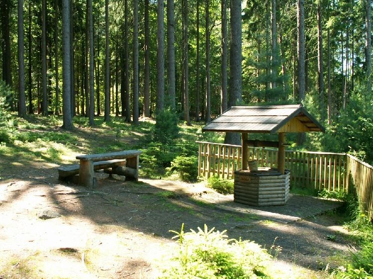 Studánka s odpočívadlem při cestě z Tuhnic směrem na Doubí a sv. Linhart, nedaleko Ovčího Rybníku.