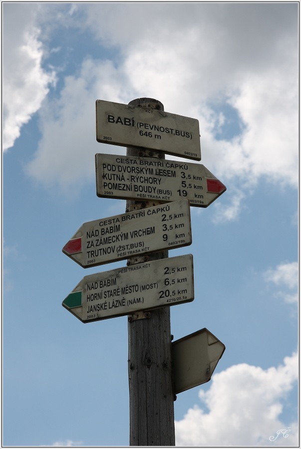 Turistické rozcestí leží v blízkosti pevnosti Stachelberg nad silnicí nad obcí Babí. Procházejí tudy tyto značené trasy: