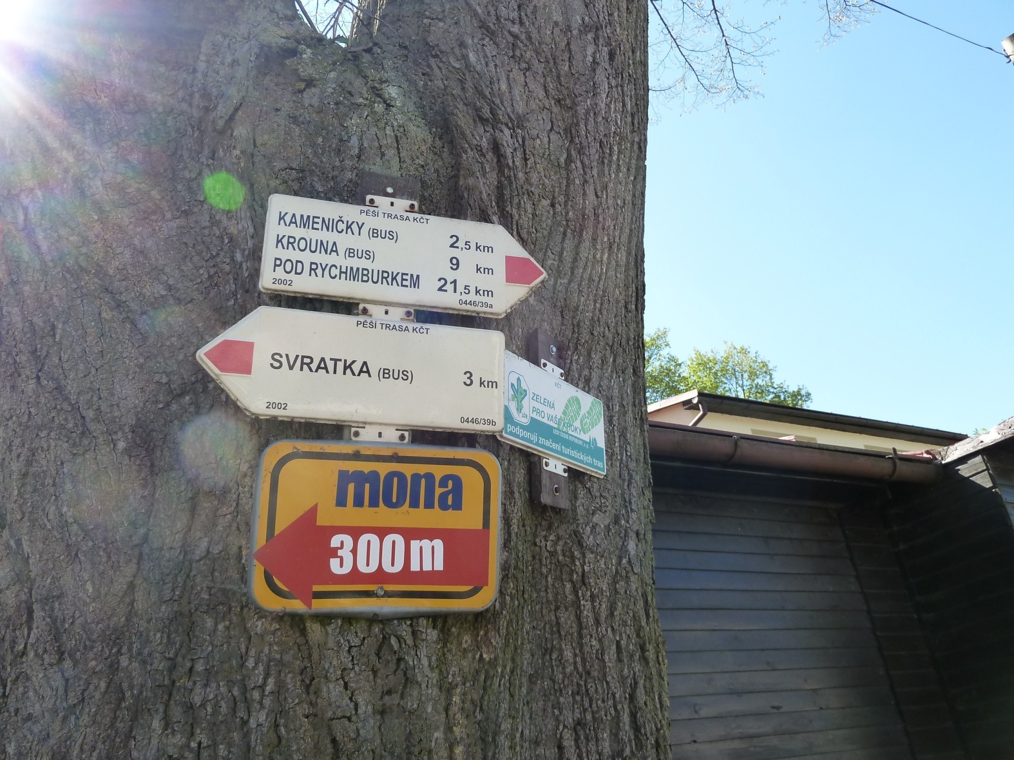 Turistické rozcestí se nachází na jihozápadním okraji obce. Prochází tudy červeně a žlutě značená turistická cesta. Červená značka vede jedním směrem přes obec, dále na Krounu, Otradov a do…