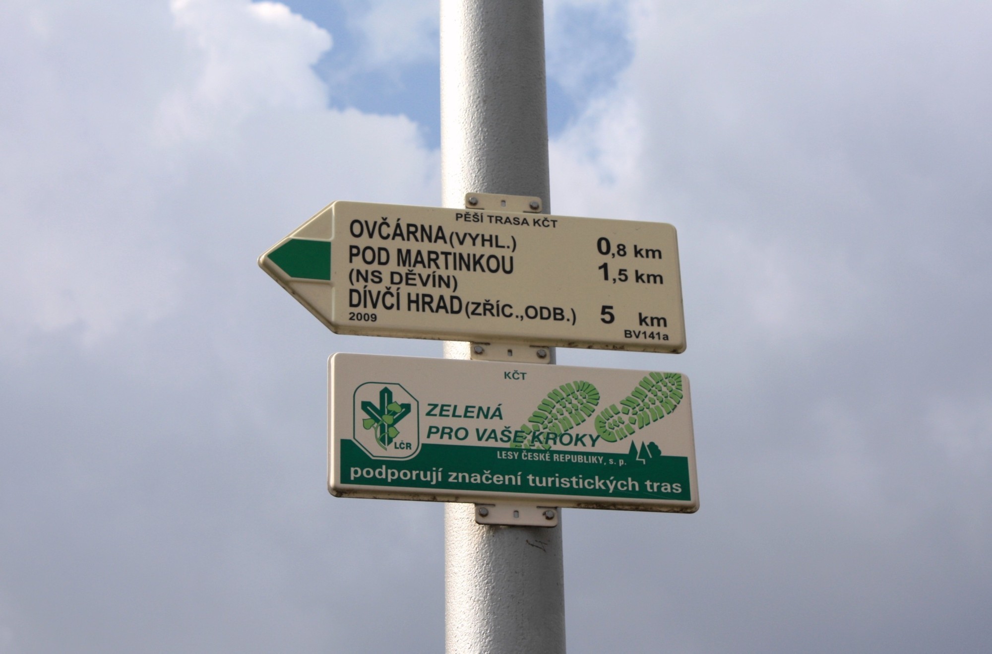 Nachází se na návsi v Horních Věstonicích naproti obecního úřadu. Začíná zde zeleně značená turistická cesta, která směřuje vzhůru k dominantní skále Martince a dále přes horní část Soutěsky kolem Ludwickova kříže pokračuje ke zřícenině Dívčí hrady. Odtud pak schází do Pavlova a dále k areálu Yacht clubu při Novomlýnské nádrži. V závěrečné fázi vede po hrázi této nádrže až do Nových Mlýnů, kde končí.