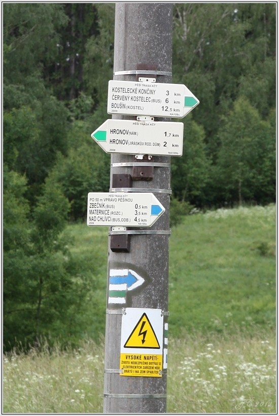 Turistické rozcestí leží v lukách nad Zbečníkem. Je odtud hezký výhled na Hronovsko. Procházejí tudy tyto turisticky značené trasy: