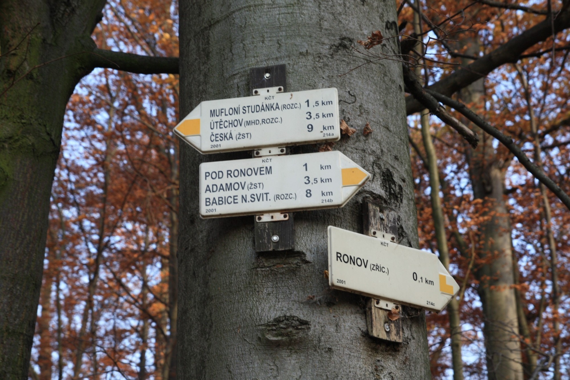 Prochází tudy žlutě značená turistická cesta, která vede jedním směrem k Muflonní studánce, do Útěchova a končí v České u vlaku. Druhým směrem směřuje k rozcestí Pod Ronovem a kolem studánky Ptačí svatyně do Adamova k železniční stanici. Od rozcestí vede krátká odbočka na vrchol hradního kopce ke zřícenině hradu Ronov.