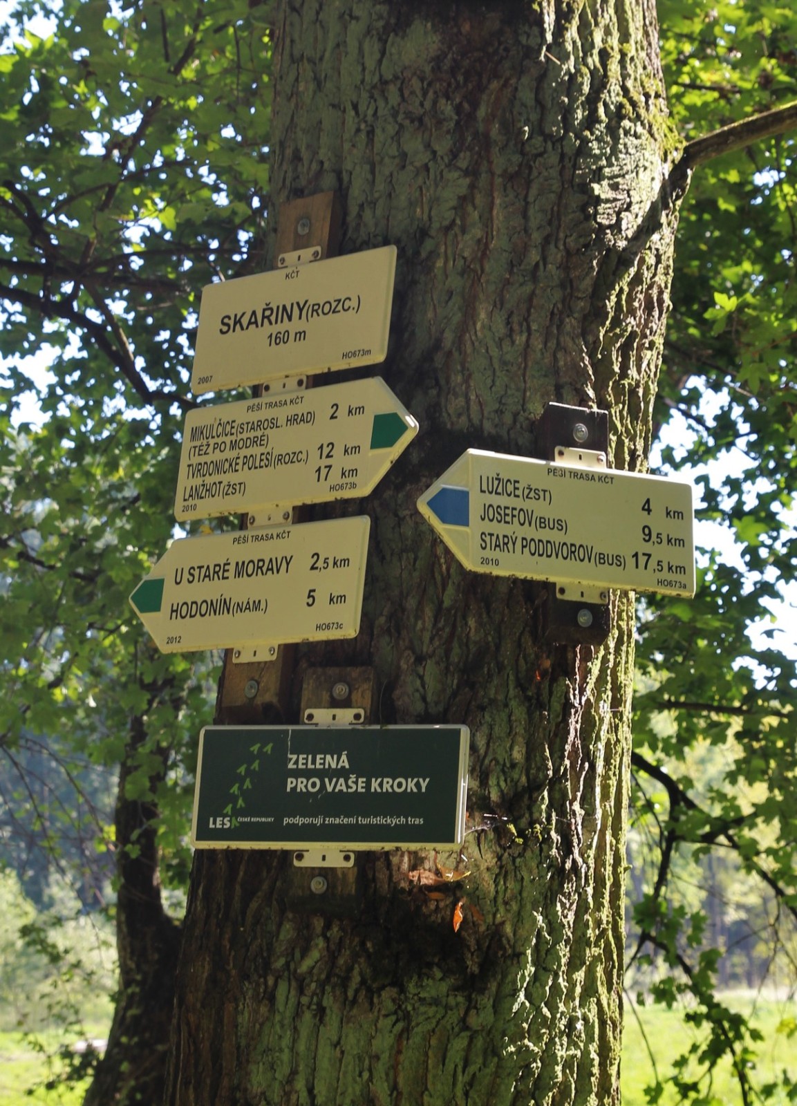 Nachází se uprostřed lužního lesa v lesní trati Uherská a Na Skařinách poblíž hraniční řeky Moravy při okraji přírodního parku Mikulčický luh. Prochází tudy modře a zeleně značená turistická cesta. Modrá vede jedním směrem k vlaku do Lužice, k rozcestí Roztrhansko, do Josefova, k vinným sklepům Nechory a končí v Novém Poddvorově. Opačným směrem pak přijde ke staroslovanskému hradišti v Mikulčicích, kde končí. Zelená vede obdobně jako modrá ke staroslovanskému hradišti a dále pokračujke lužním lesem až do Lanžhota. Opačným směrem pak dojde k rozcestí U Staré Moravy a dále až na Masarykovo náměstí do Hodonína.