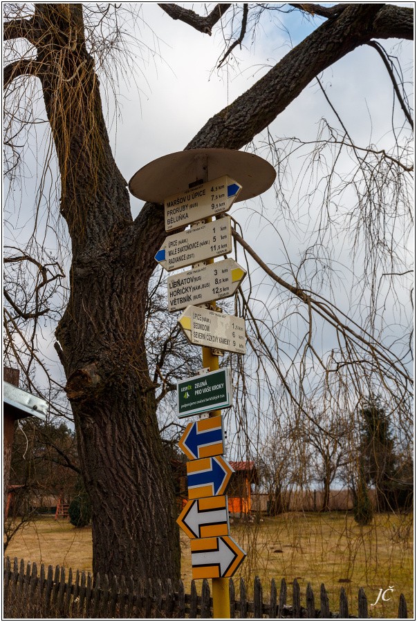 Turistické rozcestí potkáme na okraji Úpice, asi 300 metrů pod hvězdárnou. Procházejí tudy tyto značené trasy: