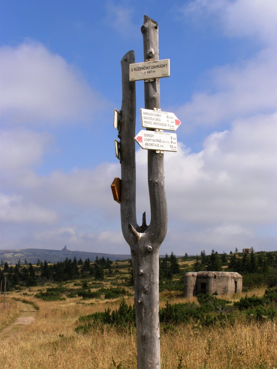 Turistické rozcestí, které se nachází v lokalitě, U Růženčiny zahrádky, na severním úpatí kotle ukazuje turistům cestu do dvou směrů. Po značce červené ve směru Vrbatova bouda, Harrachovy kameny - Dvoračky, Františkov, Jablonec nad Jizerou a po, značce zelené ve směru U Růženčiny zahrádky - U čtyř pánů (Pančavská louka), spojovací cesta k pramenu Labe.