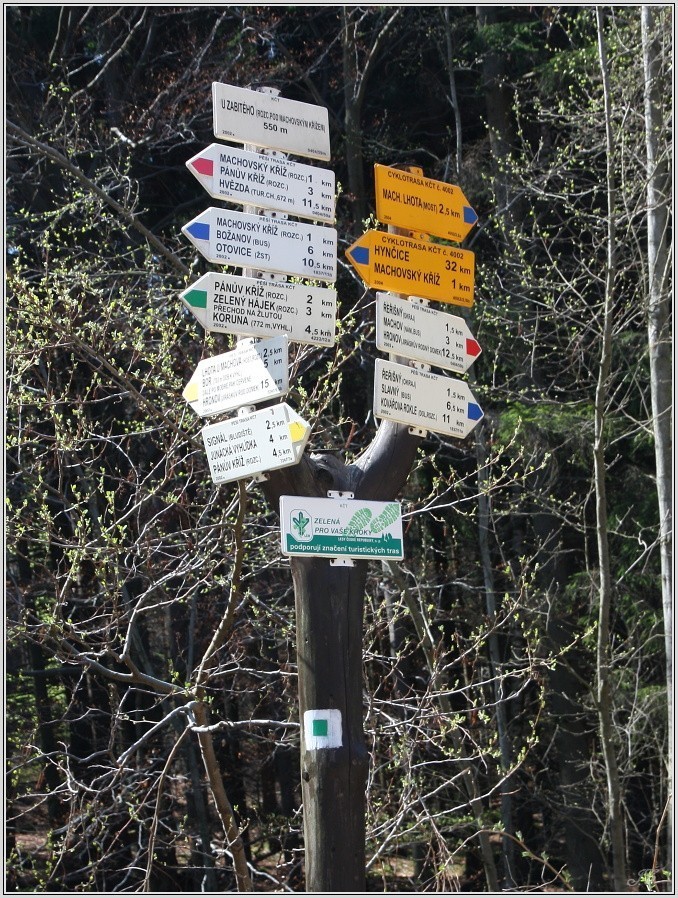 zelená na sever – Pánův kříž, Zelený hájek (odbočka po žluté na Korunu (foto 9 a 10), nad Slavným, Suchý Důl, Police nad Metují