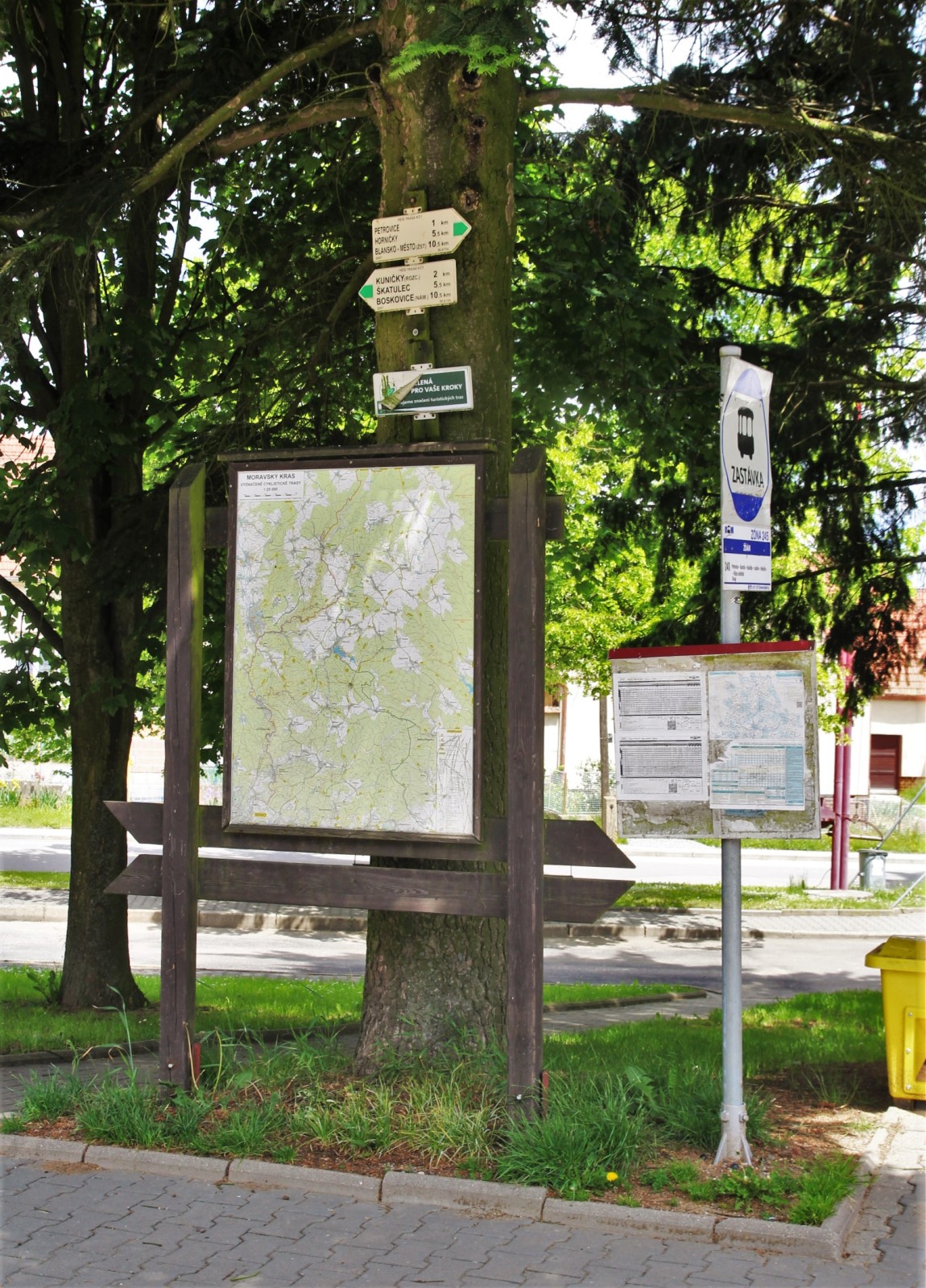 Nachází se v severozápadním cípu chráněné krajinné oblasti Moravský kras na jižním okraji návsi obce Žďár u autobusové zastávky před zdejší mateřskou školou. Prochází tudy regionální zeleně značená turistická cesta, která spojuje dvě nejvýznamnější města blanenského okresu a to Blansko s Boskovicemi. Od rozcestí vede k severu značka na osadu Kuničky, vrchol Škatulec a odtud pak klesá do boskovického předměstí Bělá a ulicemi města dojde až k místnímu vlakovému nádraží. K jihu pak směřuje do Petrovic, k rozcestí Tisy a Horničky a dále vede nad potokem Sloupečník, v závěru pak klesne do jeho údolí a ulicemi Blanska dorazí až k nádraží Blansko-město.