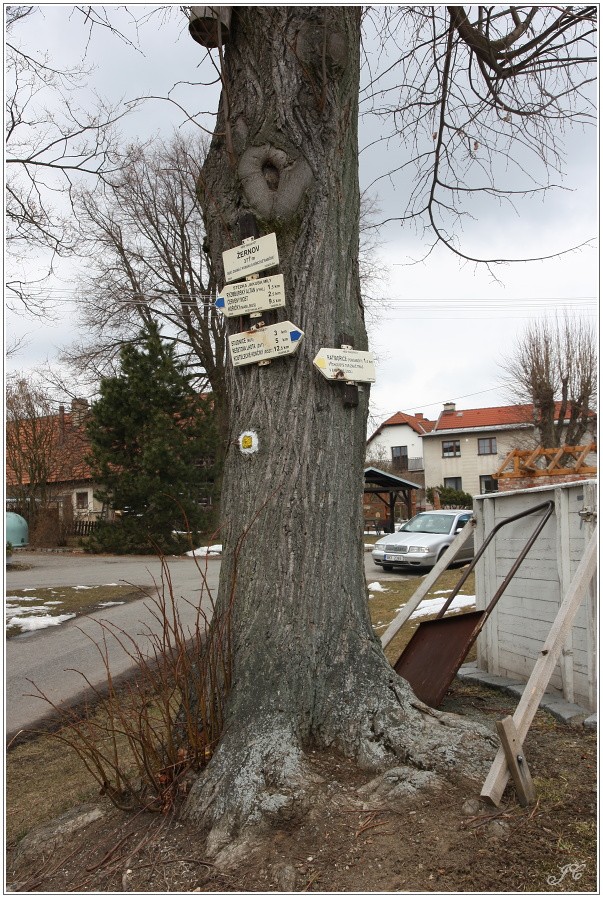 Turistické rozcestí je úmístěno uprostřed obce poblíž žernovského kostelíka. Procházejí tudy tyto turistické trasy: