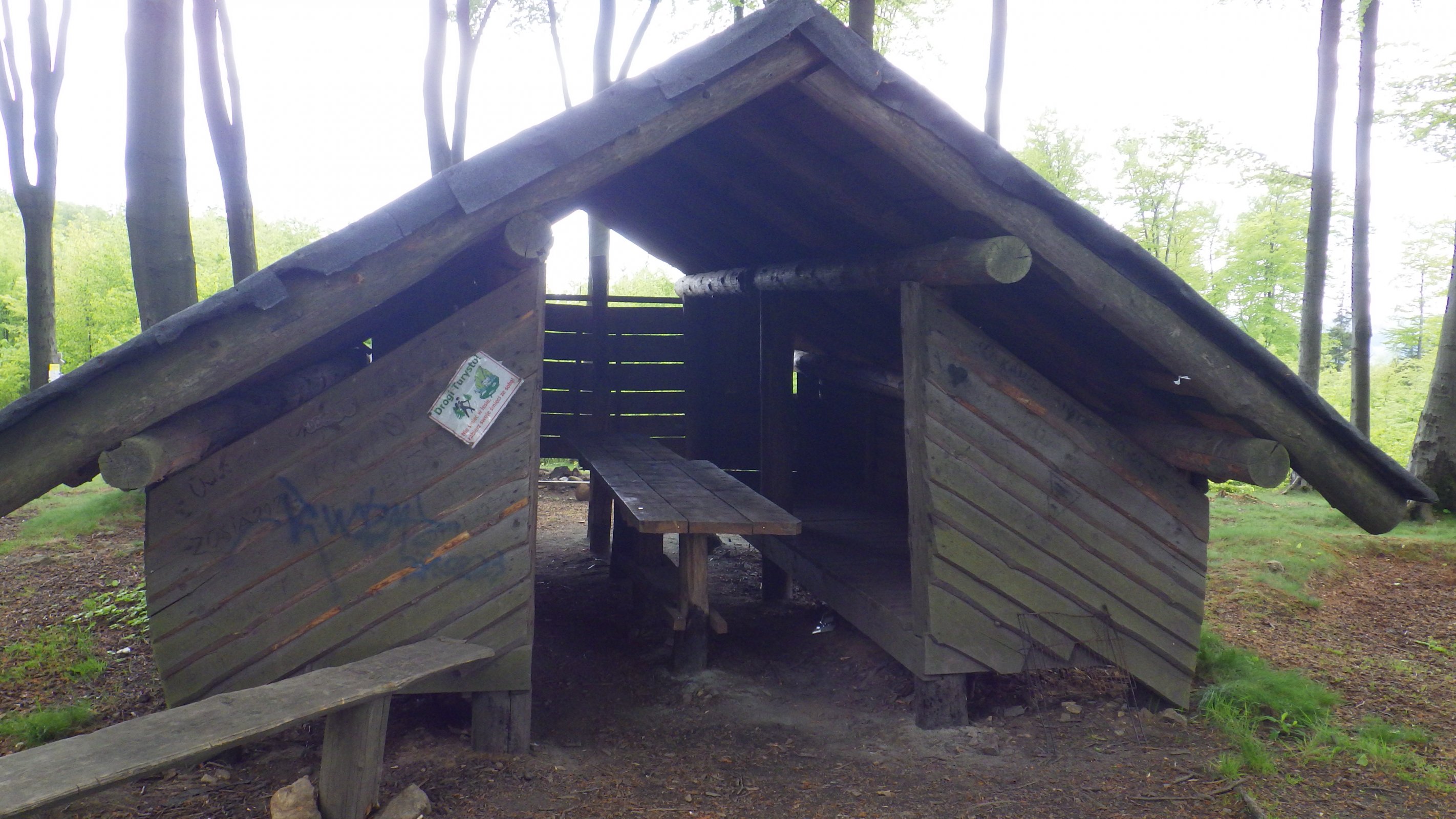 V průsmyku Przełęcz Marcowa v Sovích horách na rozcestí zelené a červené značky - nouzový turistický útulek, poměrně prostorný.