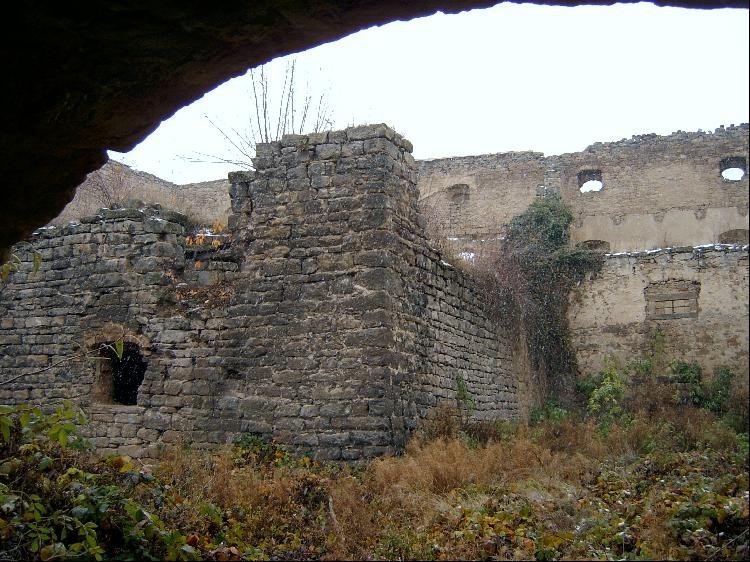 tvrz - areál: Dominantní stavbou tvrze byla čtvercová třípatrová věž. Polovina z ní je ještě zachycena na rytině v díle F.A. Hebera. Přístupná byla po můstku z prvního patra paláce. Příchozí se dostal průchodem nebo průjezdem do části nádvoří, vymeze