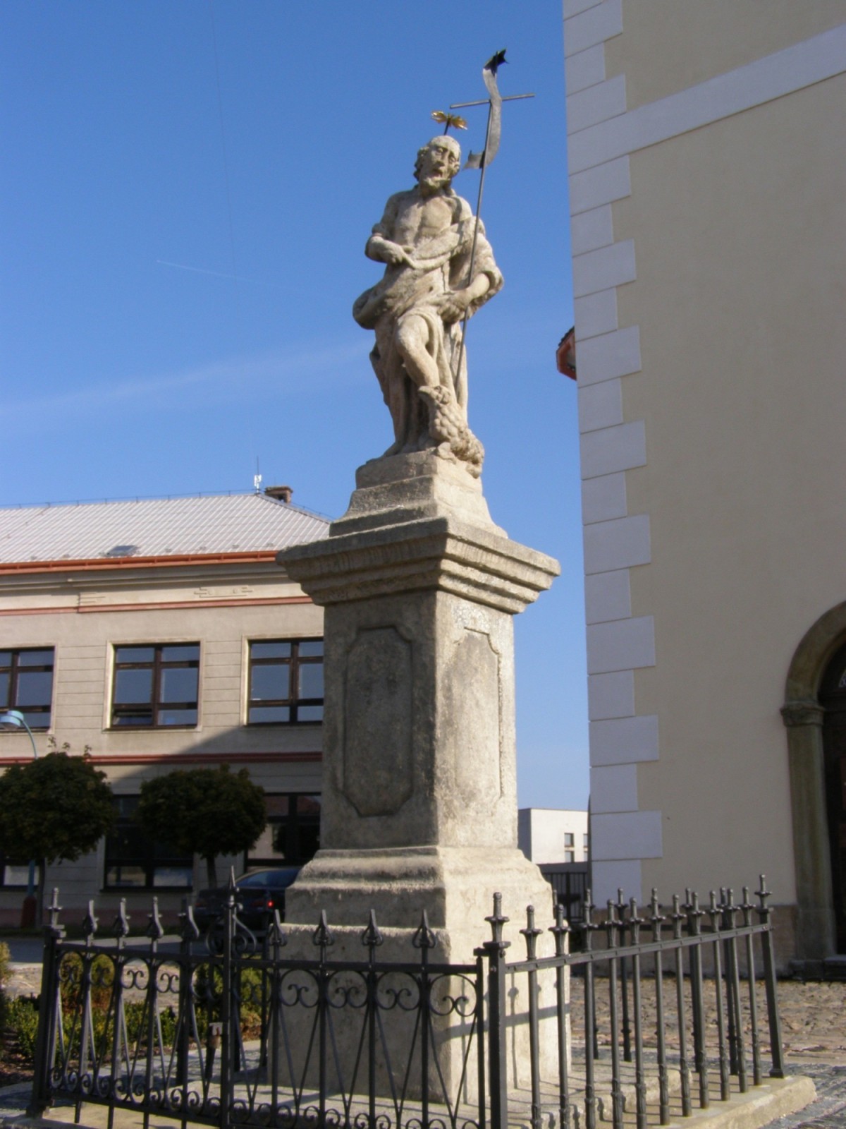 Na Komenského náměstí u kostela sv. Jana Křtitele se nachází barokní pískovcová socha Světce z roku 1767. Pomník se sochou sv. Jana Křtitele byl postaven na náklady kaplana Jana Semelky. V letech 2006-07 bylo dílo restaurováno.