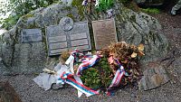 Poblíž místa, kde bylo nalezeno v řece jeho tělo je jeho pomník. Pomník tvoří tři pamětní desky.