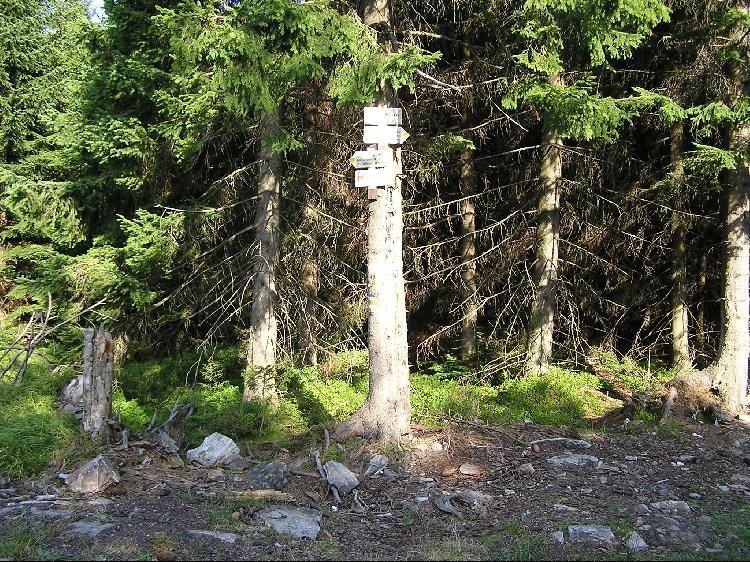Orientační místo na žluté značce po cestě od Opavské lovecké chaty přes Kazatelny na Rejvíz