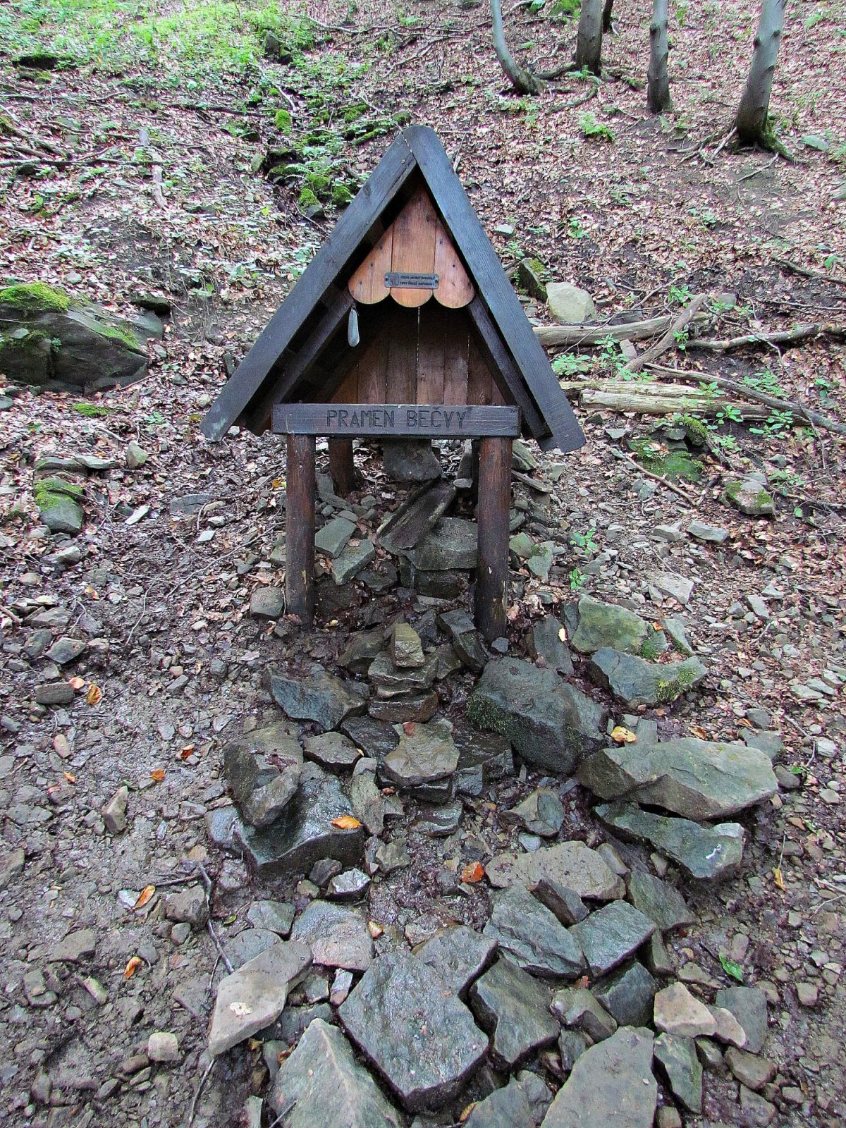 Vlastní pramen stéká svahem bučinatého lesa do dřevěného přístřešku, kde tvoří studánku, z níž je možno se napít. To ale neplatí v době extrémních veder, která v době mé návštěvy panovala... a kdy trubka ze studánky ronila jen drobné slzy, připomínající produkt prostatika při noční návštěvě WC. I tak jsem pár kapek olízl, abych splnil závazek, že se dnes napiju z obou pramenů Bečvy, ale musím přiznat, že mi tekoucí voděnka z toho předešlého chutnala mnohem víc.