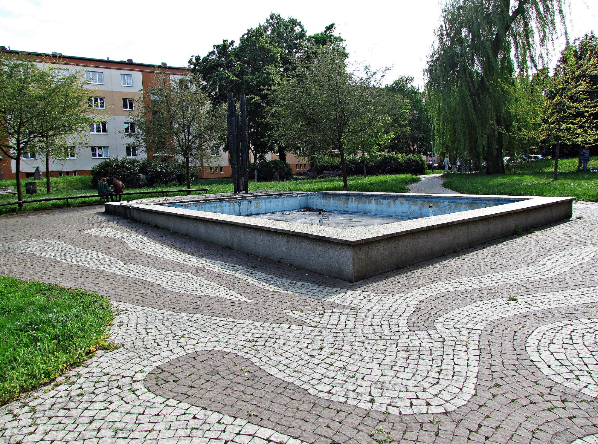 Jedná se o novodobé „umělé“ náměstí (hlavní část o rozměrech asi 50 x 50 metrů), které je vlastně jen parčíkově upravenou plochou mezi okolními paneláky. Střed krášlí obdélníková nádrž (kašna) s dřevěnou plastikou, jejímž autorem se roku 1970 stal Stanislav Mikuláštík. Nad horní část schodiště vedoucí k prodejně potravin Hruška a osvěžovně Blue Bar se vypíná plastika od Jana Habarty. Dílo nazvané „Květ“ z umělého vápence zrobil v roce 1960, ale dle mého názoru se mu tenhle „socrealistický“ výtvor poplatný režimu a době příliš nepovedl.