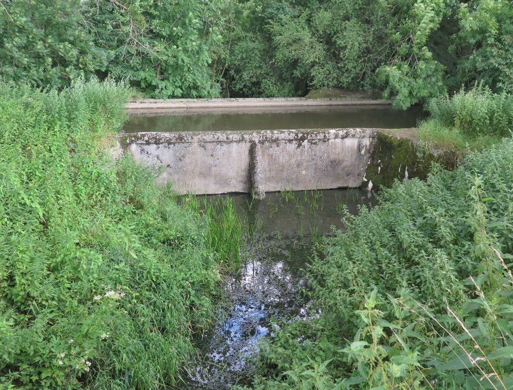 Na závěr ještě pár poznámek. Stavbu betonového koryta v roce 1923 financovala Společností českých mlynářů. Součástí tohoto technického díla, které je vlastně křižovatkou dvou vodních toků, je také hráz odpadního kanálu se stavidlem, které se zavírá při hrozící záplavě, aby se zabránilo zpětnému toku vody z řeky Moravy a následnému zaplavení Uhřičic.