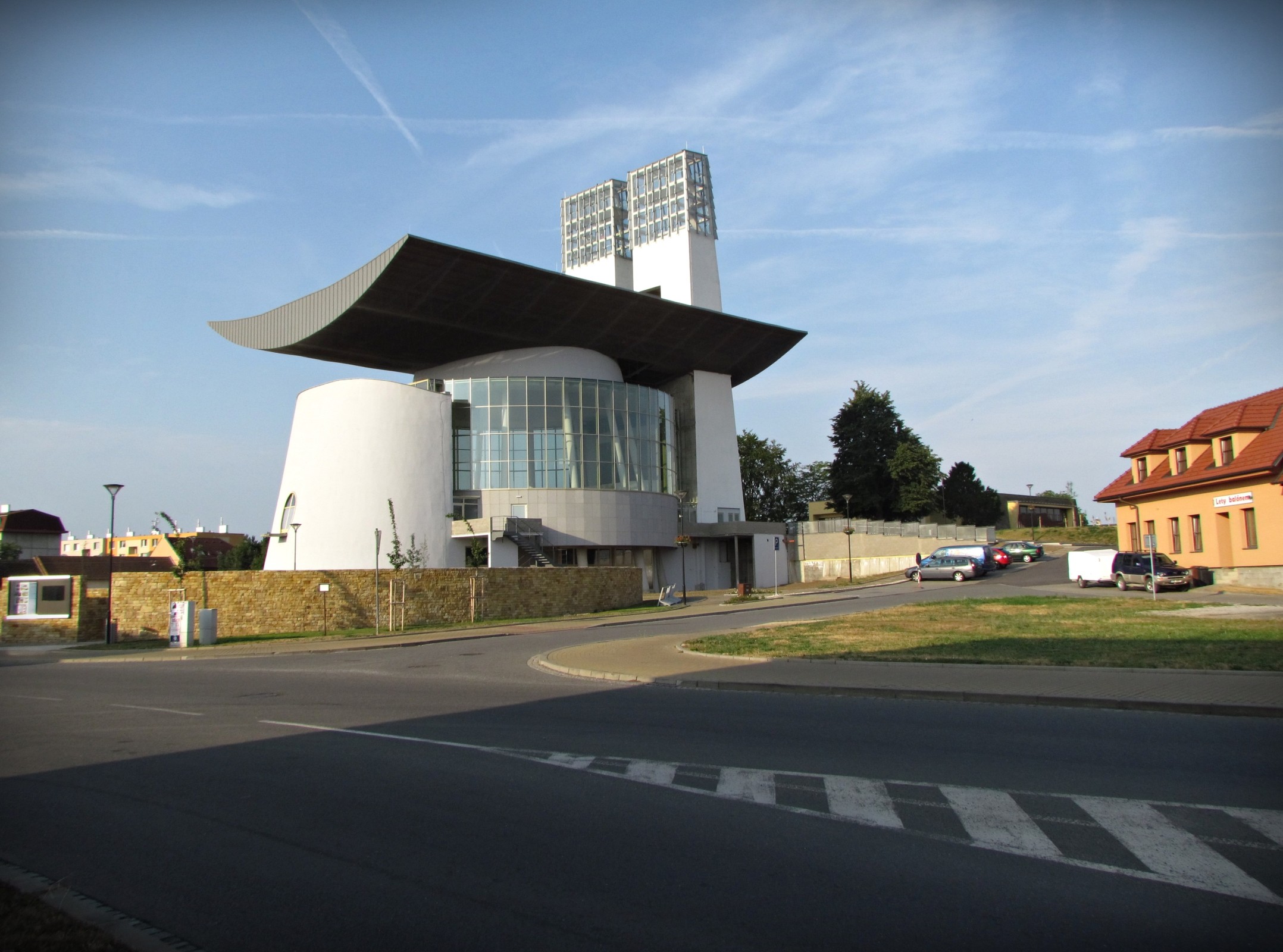 Náměstí a ani vlastní chrám ještě nejsou zcela dokončené, ale to, co chybí, už jsou jen "detaily." Výstavba náměstí přišla na 32.5 milionu korun, kostel na devadesát, ale to ještě není výsledná částka celého projektu. Na náměstí chybí do parčíku s cestičkami doplnit zeleň, později bude rozděleno na spodní a horní část, vznikne zde amfiteátr, přibudou velkoplošné Mapy o osíddlení obou břehů Moravy a informační cedule a parkoviště. Základní kámen kostela byl papežem posvěcen už roku 1997, o tři roky později vybráno místo a v roce 2002 se konečně začalo stavět. Po dvanácti letech - 5.října 2014 se kostel Svatého Ducha dočkal od českobudějovického biskupa Pavla Posáda vysvěcení a o měsíc později se v něm začaly sloužit mše. Slavnostního aktu se zúčastnil i architekt tohoto novodobého zázraku - ing. architekt Ivo Goropevšok. Jak jméno napovídá, autor není našinec, ale cizinec. A přijel k nám až z dalekého Slovinska. Možná, že si tento pán také v dětství hrával s barevnými dřevěnými skládačkami, ze kterých se tak krásně daly postavit různé fantaskní hrady a zámky, možná, že si při těchto hrách uvědomil, že právě v jednoduchosti je největší síla. On ten nový kostel vlastně sestává "jen" z chrámové lodě, napodobující svým pláštěm jakousi novodobou prosklennou rotundu, střechy nad ní, jejíž profil má tvar kruhové výseče a působící navzdory faktu, že váží 60 tun, naprosto vzdušným dojmem... a ze dvou věží, vysokých přes čtyřicet metrů, mezi nimiž se nachází hlavní vchod do kostela. Vchod leží naproti vchodu do sousedního Památníku Velké Moravy, což má být symbolickým propojením minulosti i současnosti. Chrámová loď se nachází vysoko nad zemí a pod její podlahou se skrývá suterén se sálem, který bude využíván pro kulturní, společenské a vzdělávací akce. I když toho ještě spousta chybí (např. varhany z Itálie) anebo se kvůli financím čeká na dokončení jiných částí stavby, přesto už nádherný chrám slouží svému účelu a obyvatelé Starého Města mohou být na tento skvost soudobé architektury právem hrdi!