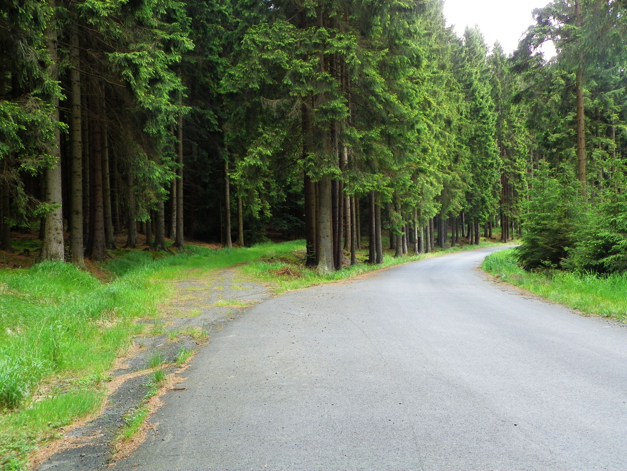 Úzkokolejka odbočuje vlevo, cesta v pravo jde do kopce  autor: Mil0s