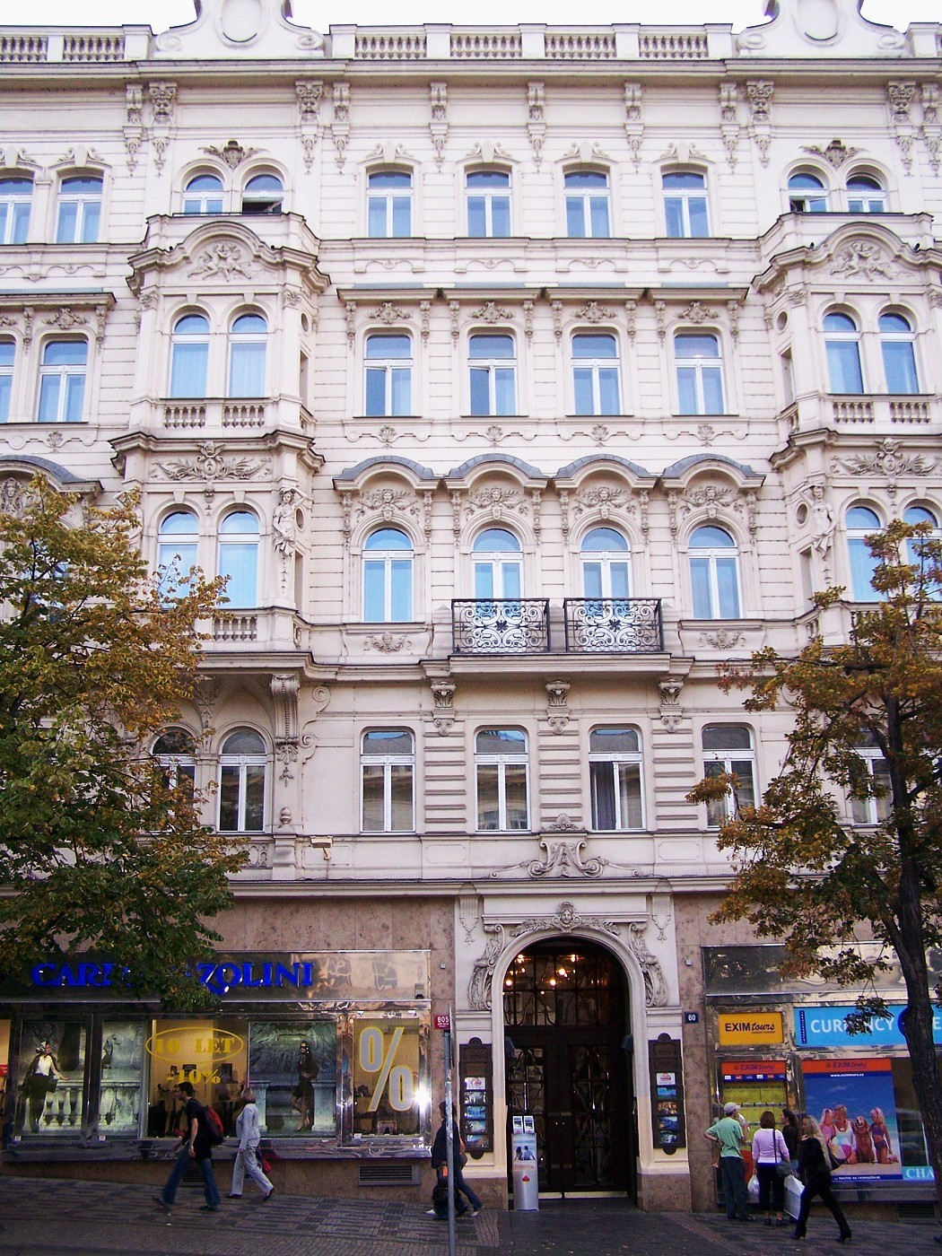 Novobarokní nájemní dům z roku 1892 od Ferdinanda Víška. Upraven byl roku 1924-26 Františkem Tomiškou. Řadový pětipatrový dům, čtyřkřídlý, s vnitřním dvorem. Mansardová střecha, skrývající podkroví, částečně zakryta balustrovou atikou. Průčelí s balkony, ve 3. a 4. patře s litinovým zábradlím.