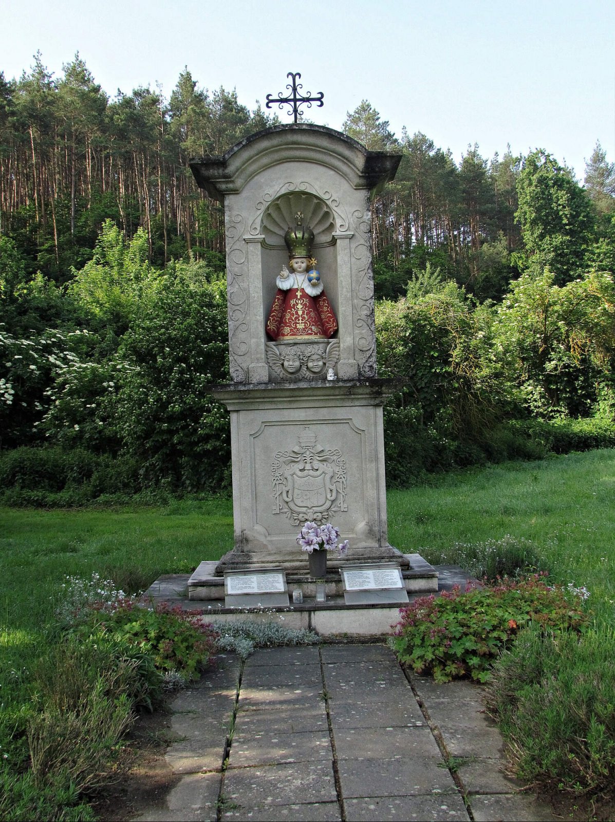 Stojí jižně od kláštera za potokem Salaškou na ulici Na Hrádku. Z bílého mušlového vápence pocházejícího z jihofrancouzského Oppede ji roku 2006 zhotovil sochař Alain Bidal. Velehradu byla věnována francouzským sdružením „Poutní cesty křesťanskou Evropou.“ Dne 22.10.2007 byla výklenková kaplička požehnána olomouckým arcibiskupem Janem Graubnerem. V té době ale nebyla ještě kompletní, protože při převozu z Francie byly některé její díly poškozeny. Spolu s nimi i socha Pražského Jezulátka, jenž bylo při obřadu svěcení prozatímně nahrazeno podobnou skulpturou z velehradské baziliky.