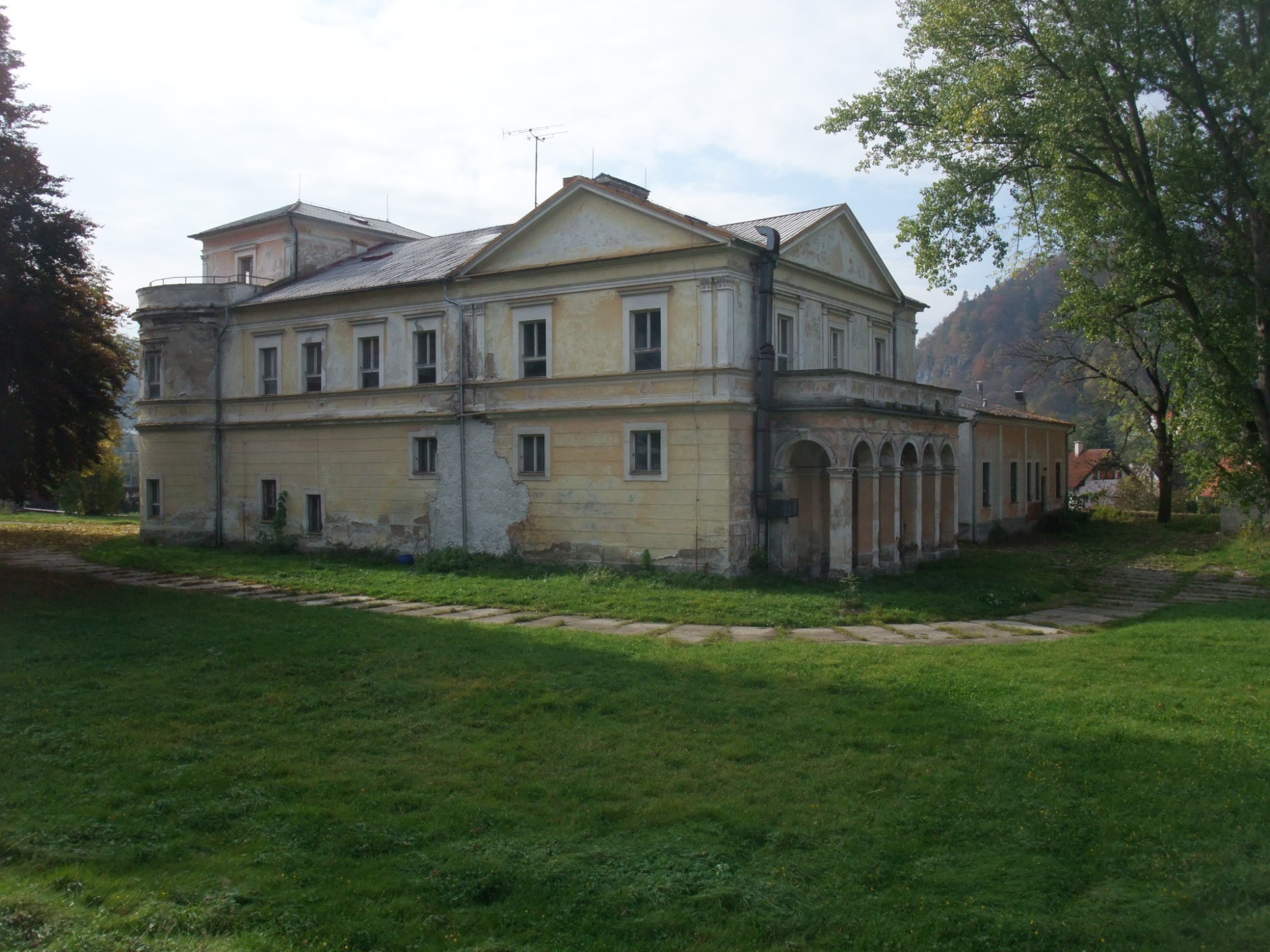 Pozdně barokní zámek, vybudovaný Janem Františkem Hesslerem ve středu obce na pravém břehu Ohře v l. 1747-1755, byla jednopatrová stavba o dvou příčně situovaných křídlech obdélníkového půdorysu. Tehdy zde byla také zřízena Zámecká zahrada. Četné pozdější přestavby sice zachovaly základní dispozici původní zámecké architektury, ale téměř setřely její historický ráz. Zejména úpravy fasád a interiérů prováděné r. 1870 za tehdejšího majitele, karlovarského lékaře a lázeňského podnikatele Dr. Löschnera. Poslední adaptace zámku byla provedena v l. 1976-1977. Poslední adaptace zámku byla provedena v l. 1976-1977.