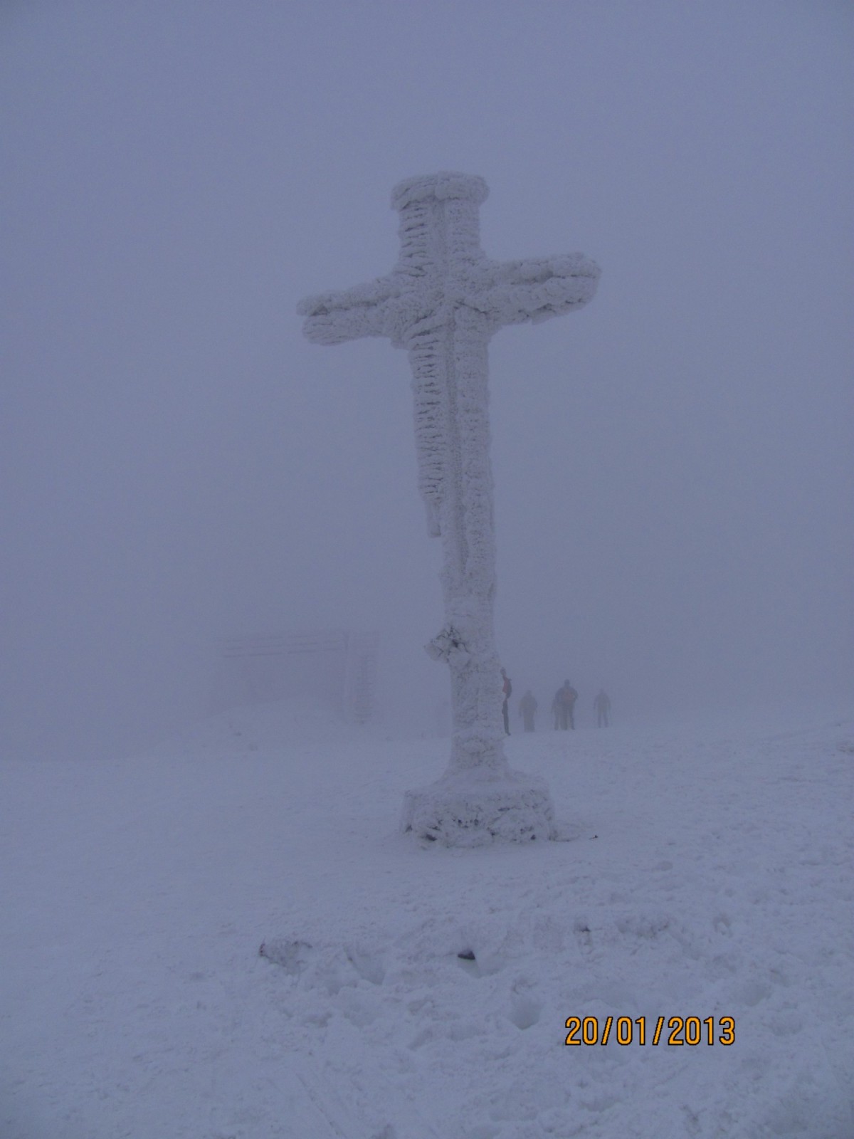 Od autobusu v Dedovke jdeme k vlekům koupit lístek na lanovku (8€) a nasedáme. Míříme vzhůru a pod námi již vidíme lyžaře. Na horní stanici vyskočíme, zabalíme se a vyzbrojeni vyrážíme do prudkých svahů. Zastavíme se v dřevěné kapličce. Po zelené značce (asi 3,5km) pokračujeme. Příroda (z velké části Národní přírodní rezervace) je krásně zasněžená a my kloužeme po uježděném sněhu. U další stanice lanovky sudávám první vrstvu. Už jsme mimo sjezdovku a potkáváme jen běžkaře. Zastavíme se u ojedinělého krasového jevu skalní díry. Nakonec dorazíme již při minimální viditelnosti ke kříži na vrcholu.