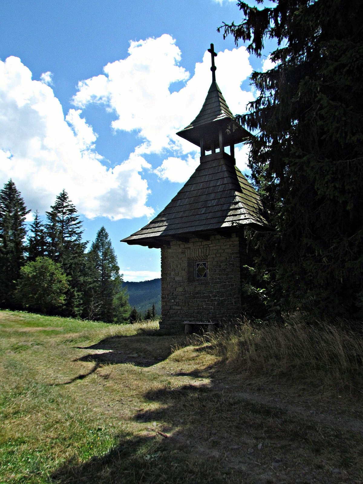 Už při příchodu na Javorníček (od sedla Příschlop) na mne toto místo silně zapůsobilo a já si připadal, jako bych se ocitl v interiéru romantického stavení a pozvolna v něm otvíral okno do tajuplné zahrady. Jemným přiotevřením se v zorném poli mého zraku nejprve ocitla ta magická kaplička stojící u lesa a po rozrazení okenního křídla dokořán byly okolní překrásnou přírodou a výhledy zcela uchváceny i všechny ostatní mé smysly. (Hlavně tedy ten estetický…)