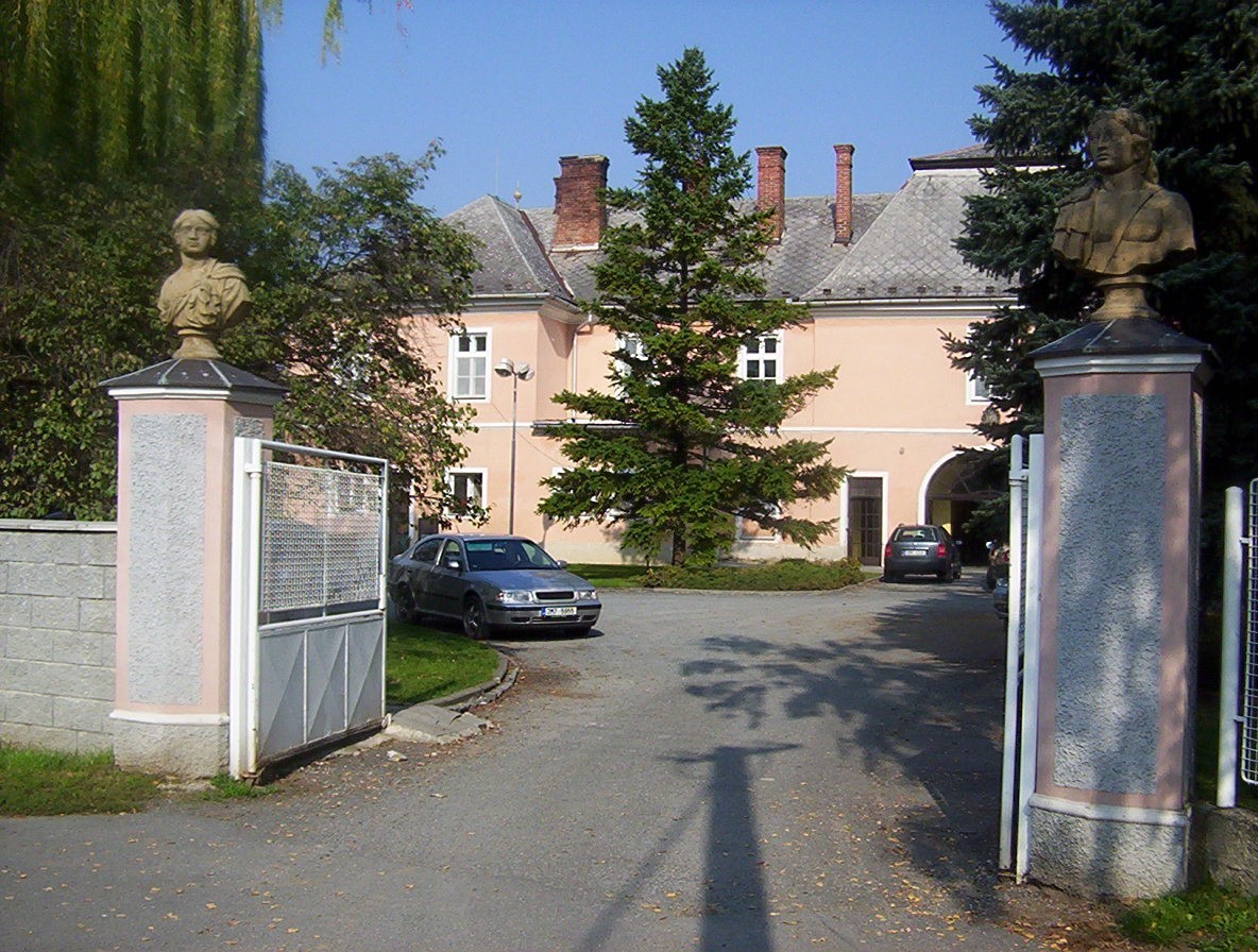 Velký Týnec-zámek-průčelí zámku se sochou od kostela-Foto:Ulrych Mir.