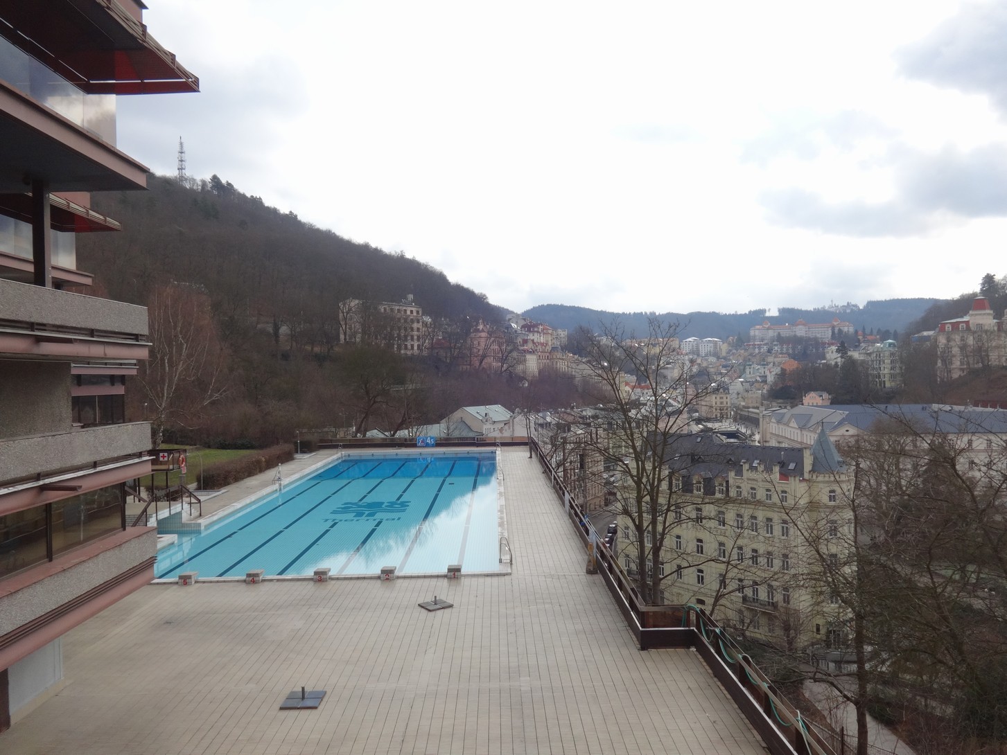 Příspěvky z okolí Venkovní vyhřívaný bazén u hotelu Thermal v Karlových Varech