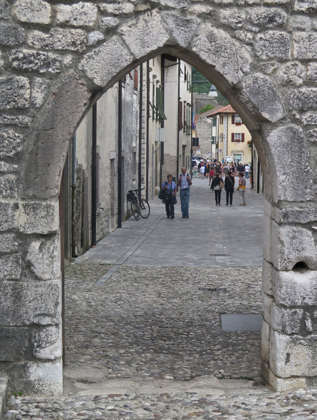 Kdo alespoň částečně zná dějiny této oblasti, nebo četl předchozí autorovy příspěvky o Venzone, toho jistě nepřekvapí, že ani středověké městské hradební zdi neunikly vážnému poškození při zemětřesení z května 1976. Tehdy bylo dokonce vážně uvažováno o jejich stržení. Nakonec ale zvítězil zdravý rozum a venzonské opevnění bylo pečlivě zrestaurováno. Kámen po kameni a většinou s opětovným využitím původního stavebního materiálu …