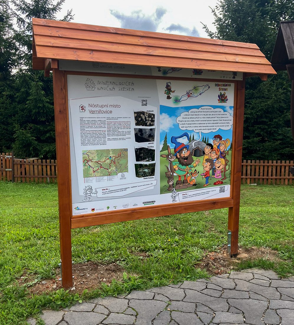 Mimo Permoníkovy stezky se dočkala rekonstrukce, spíše obnovy „velká“ mineralogická stezka v okolí Vernířovic a Sobotína. Ta už trpěla určitou věkovikostí. Na některé tabule této větší sestřičky narazíme i přímo ve Vernířovicích, celkově ale někdy příště.