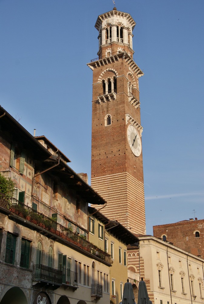 Pro většinu návštěvníků „města věčných milenců“ zůstane pravděpodobně v paměti jako hlavní dominanta Verony středověká věž Lamberti, která je skutečně nejvyšší budovou Verony. Její stavba byla přitom zahájena již v 11. století, ale dokončení se dočkala až roku 1403, i když některé informační prameny uvádějí již rok 1172. Slavnostní předání této románsko–gotické věže veřejnosti však proběhlo teprve v roce 1464. Věž je vysoká 84 metrů, své jméno nese po původním majiteli, kterého v současnosti již nahradilo město Verona. A hned na úvod si ještě můžeme prozradit, že věž Torre dei Lamberti najdeme v historickém centru města, konkrétně na náměstí Piazza Erbe (občas se ovšem také uvádí ulice Via della Costa), což není v podstatě nic jiného, než starověké římské fórum.