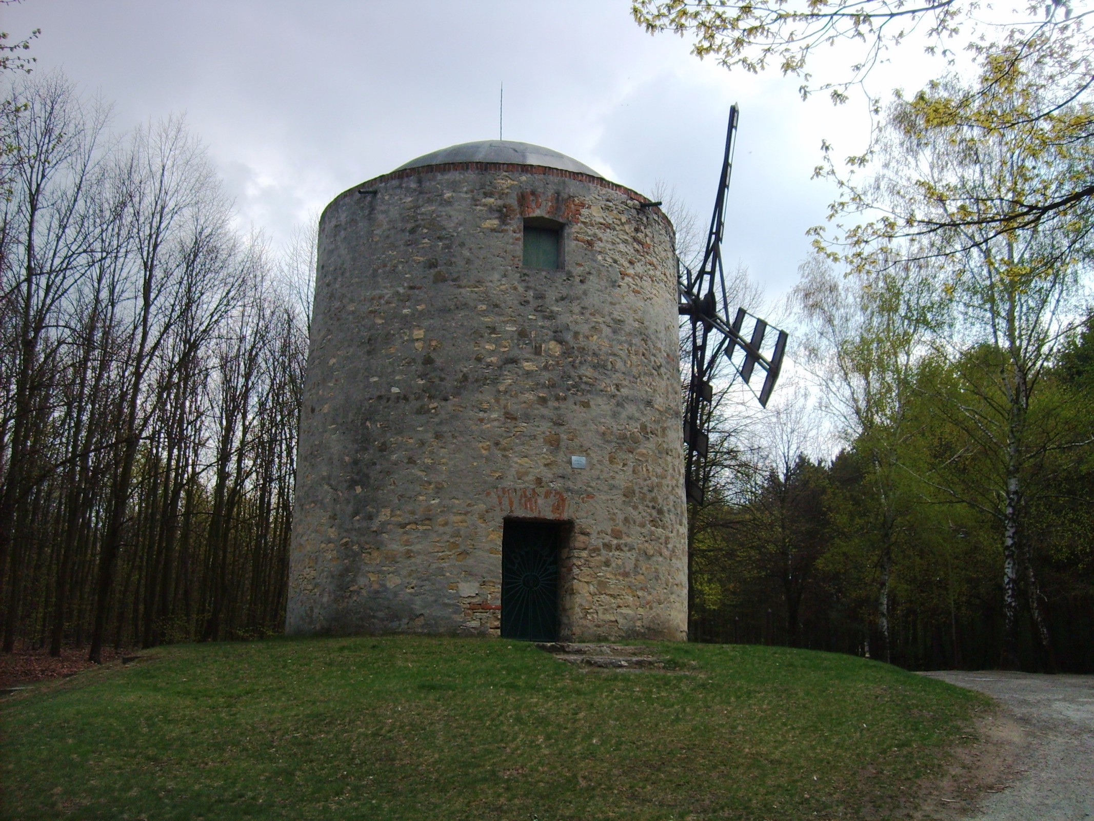 Tento mlyn je trojpodlažný kamenný podpivničený objekt kruhového tvaru s vertikálnym dreveným kolesom s krídlami a drevenou strieškou, ktorá sa otáčala podľa vetra. V dolnej časti mlyna býval mlynár, na ďalších poschodiach bola mlynica. V mlyne sa prestalo mlieť po prvej svetovej vojne v roku 1926. Potom začal postupne chátrať. O jeho záchranu sa pričinilo poľovnické združenie, zásluhou ktorého po roku 1970 došlo k jeho rekonštrukcii. Jeho pôvodná otáčavá strecha bola nahradená strechou s tehlovou kopulou, jeho interier poľovníci používajú ako chatu, ale nenechávajú si mlyn iba pre seba, konajú sa tu i rôzne kultúrne akcie.