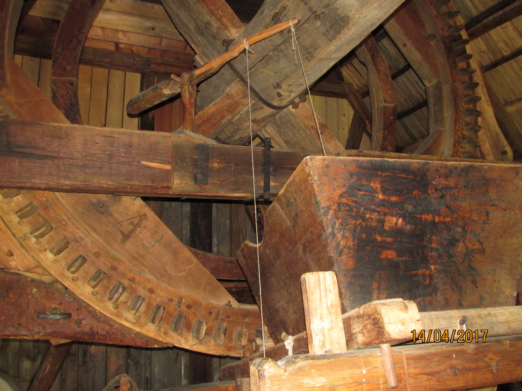 Mlýn je vysoký 12m a jeho křídla měří 8m. Uprostřed je sloup tatík se vzpěrami apoštoly, nosný trám se nazývá matka. V přízemí je moučnice, mlýnské kameny jsou v patře. Do mlýna se vchází prudkými schody.