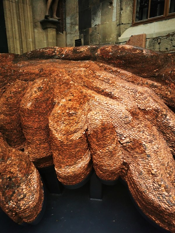 Viedeň - Stephanplatz - socha Raising Hands - Zdvíhanie rúk