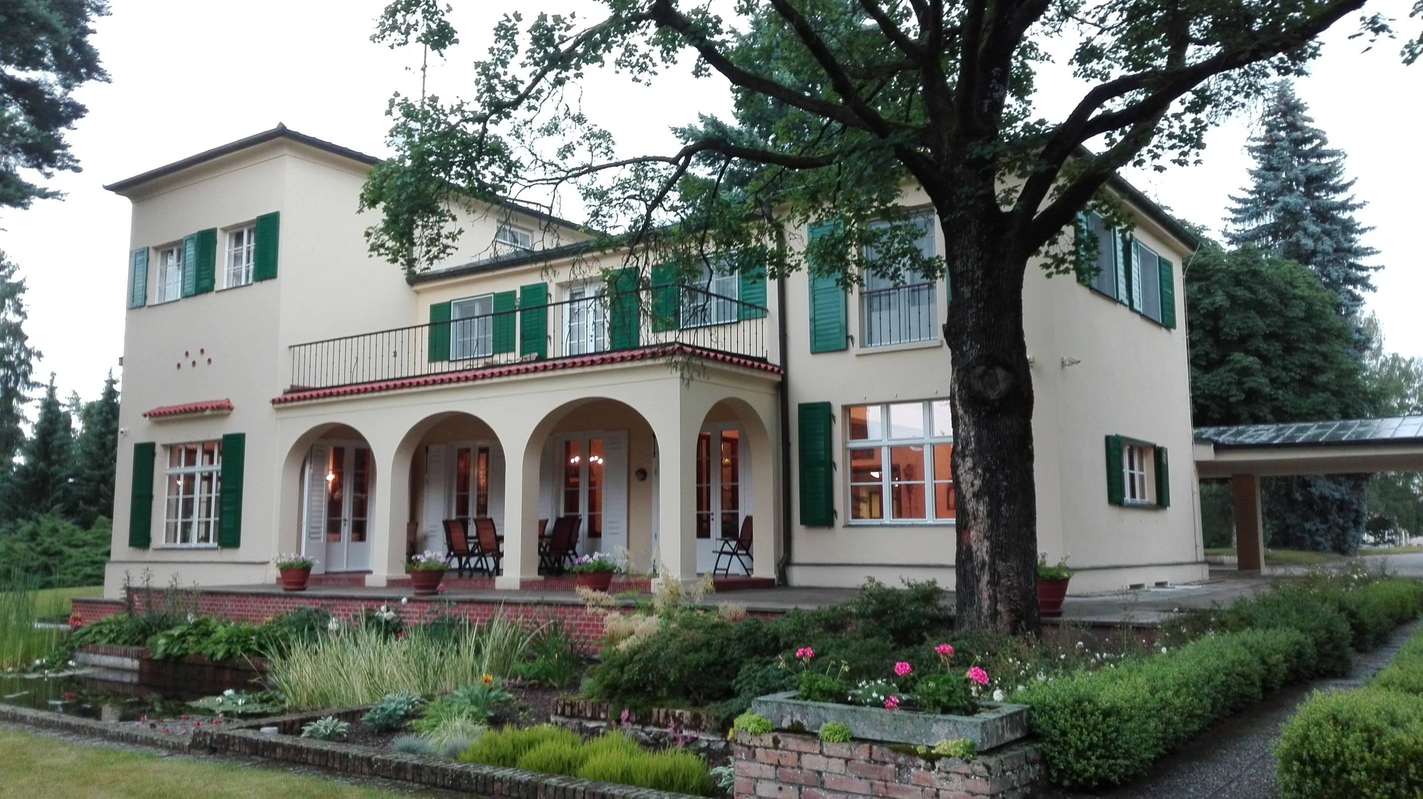 V zahradě před vilou se nás ujal sympatický průvodce a zasvěcené nás provedl samotným domem i krásnou zahradou.