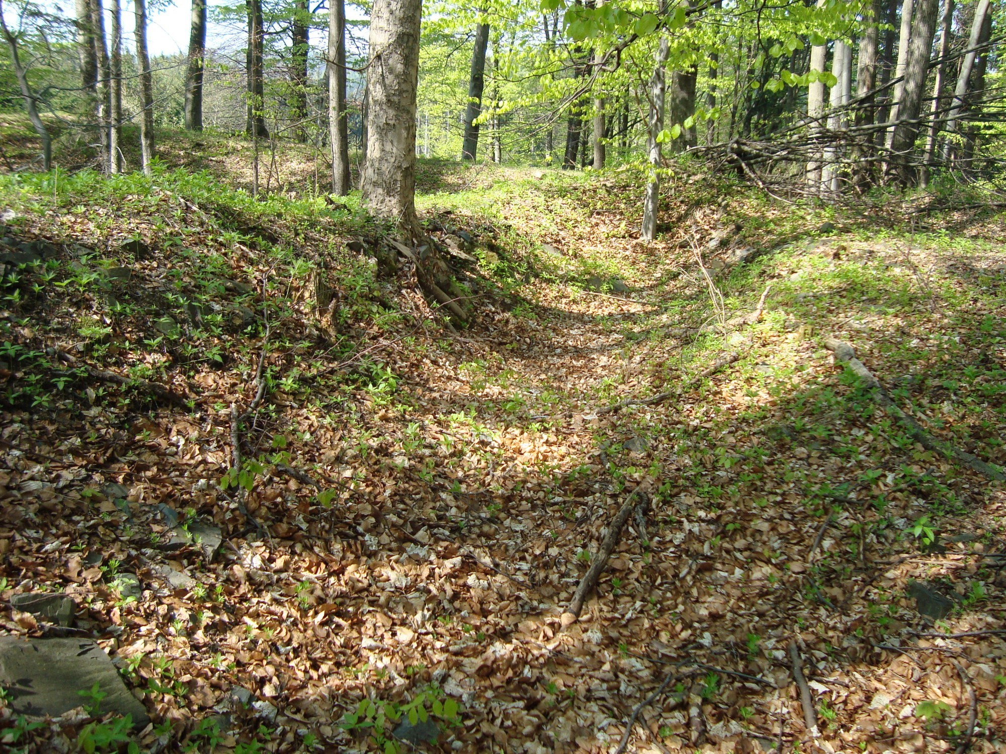 Vildštejn-příkop a val na severovýchodě hradu-Foto:Ulrych Mir.
