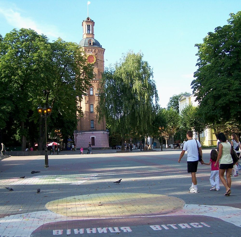 Jednou z dominant města Vinnycja je stará Vodárenská věž, v její blízkosti je i památník hrdinným partyzánům.