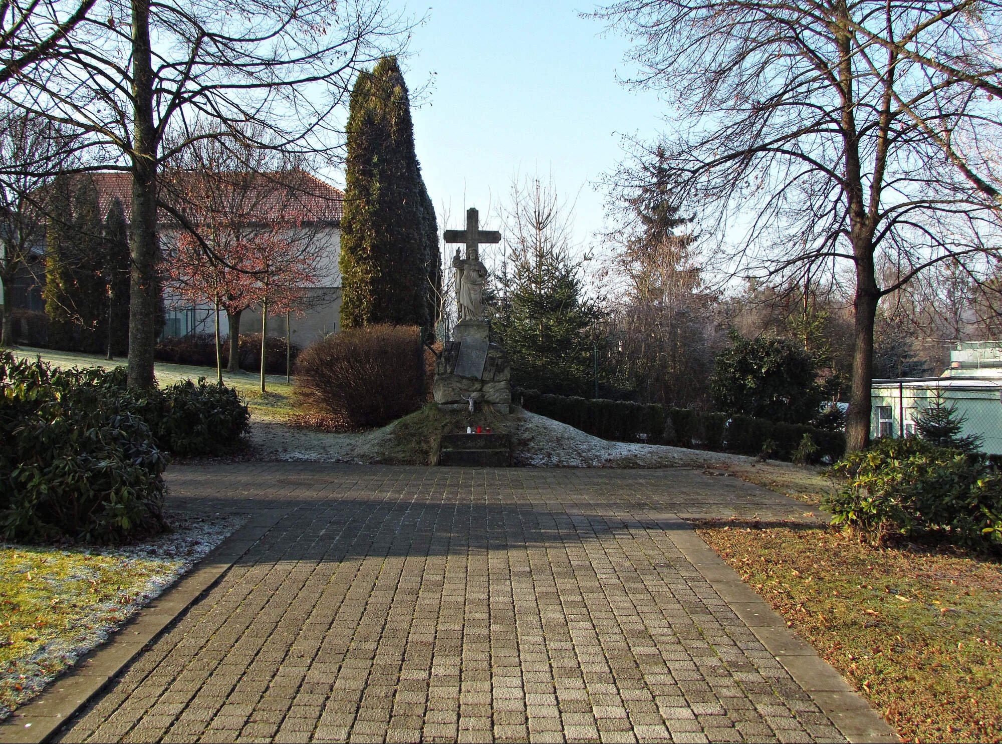 Nachází se za kostelem sv.Vavřince v areálu hřbitova na samostatné terase s kolumbáriem pod ním a je přístupný brankou u chrámu. Pomník sestává z napodobeniny skály, na němž je umístěna pamětní deska a skulptury kázajícího Krista, stojícího na skalisku před křížem.