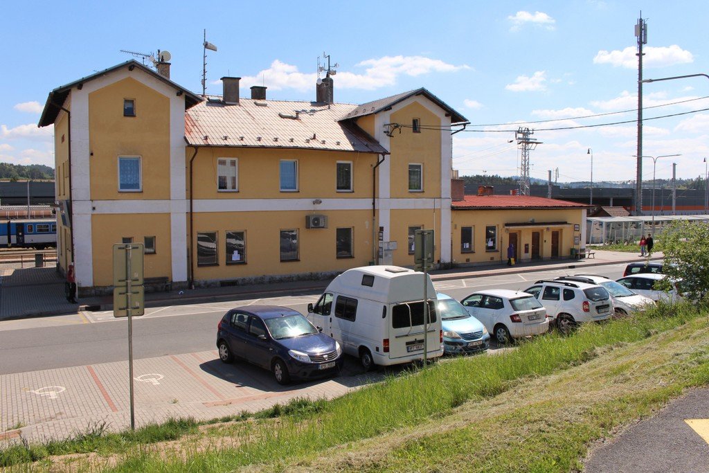 Nepomucké vlakové nádraží se nachází ve Dvorci, který je místní částí města Nepomuku. Prochází tudy železniční trať z Plzně do Českých Budějovic. Původně to byla dráha Františka Josefa, která spojovala Vídeň s Českými Budějovicemi a Plzní. První vlak tady projel 1. září 1868. V té době tu kromě nádraží stála výtopna a vodárna. Na trati do BLATNé projel první vlak 11. června 1899. Poslední výraznou změnou byla elektrifikace mezi Plzní a Českými Budějovicemi a první vlak tažený elektrickou lokomotivou tady projel 3. října 1963. Nádražím prochází šest kolejí a je tady pět nástupišť. Nádražní budova je patrová se dvěma užšími a vyššími křídly po stranách. Z pohledu z nástupišť je po levé straně přístavek. Na straně opačné, nedaleko budovy, stojí stánek s občerstvením. U nádraží je stanoviště autobusů a větší parkoviště. Vlaky tady v denní době projíždějí v hodinových intervalech a staví tady všechny rychlíky.