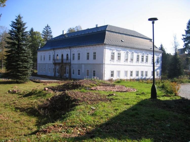Na místě původní tvrze nechal průmyslník J. E. Theer v 90. letech 18. století vybudovat jednoduchý zámek. V současné době je zámecký objekt účelově využíván.