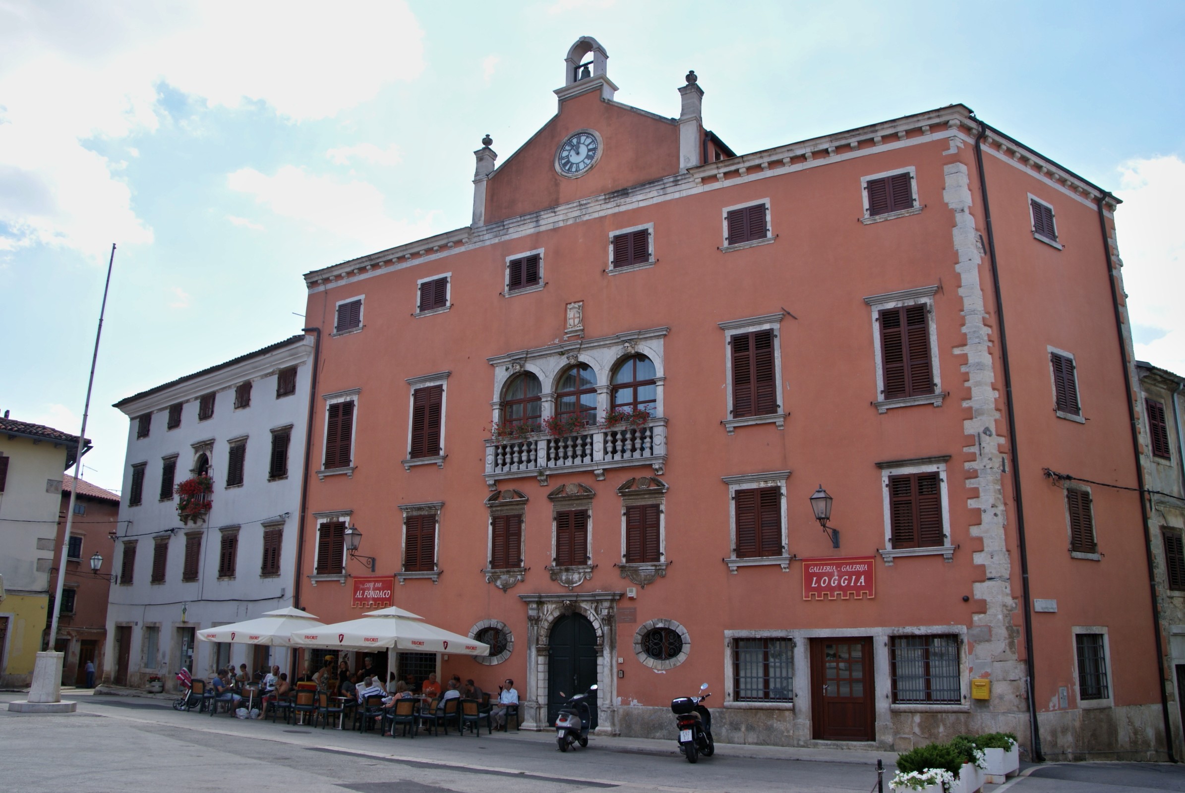 Použít pro tento palác ono nerudovské „vším, čím jsem byl, tím jsem byl rád“ se pro tento objekt asi moc nehodí. V průběhu staletí byl totiž palác využíván jako sídlo benátských místodržitelů zvané Loggia, městská obilná sýpka, sídlo podesty, městský archiv, byty městské rady, vězení (to se jistě mnozí radní nemuseli ani stěhovat), divadlo, císařská odvodová místnost a později obytný dům. Dnes zde sídli vodnjanské Italské společenství.