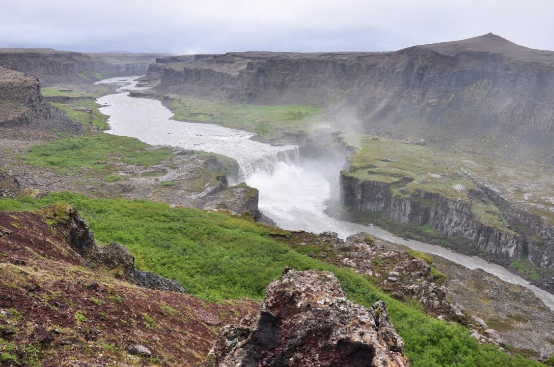 Island – 2. výlet v parku Jökulsárgljúfur - z tábořiště Vesturdalur podle řeky Jökulsá á Fjöllum k vodopádům Selfoss a Dettifoss
