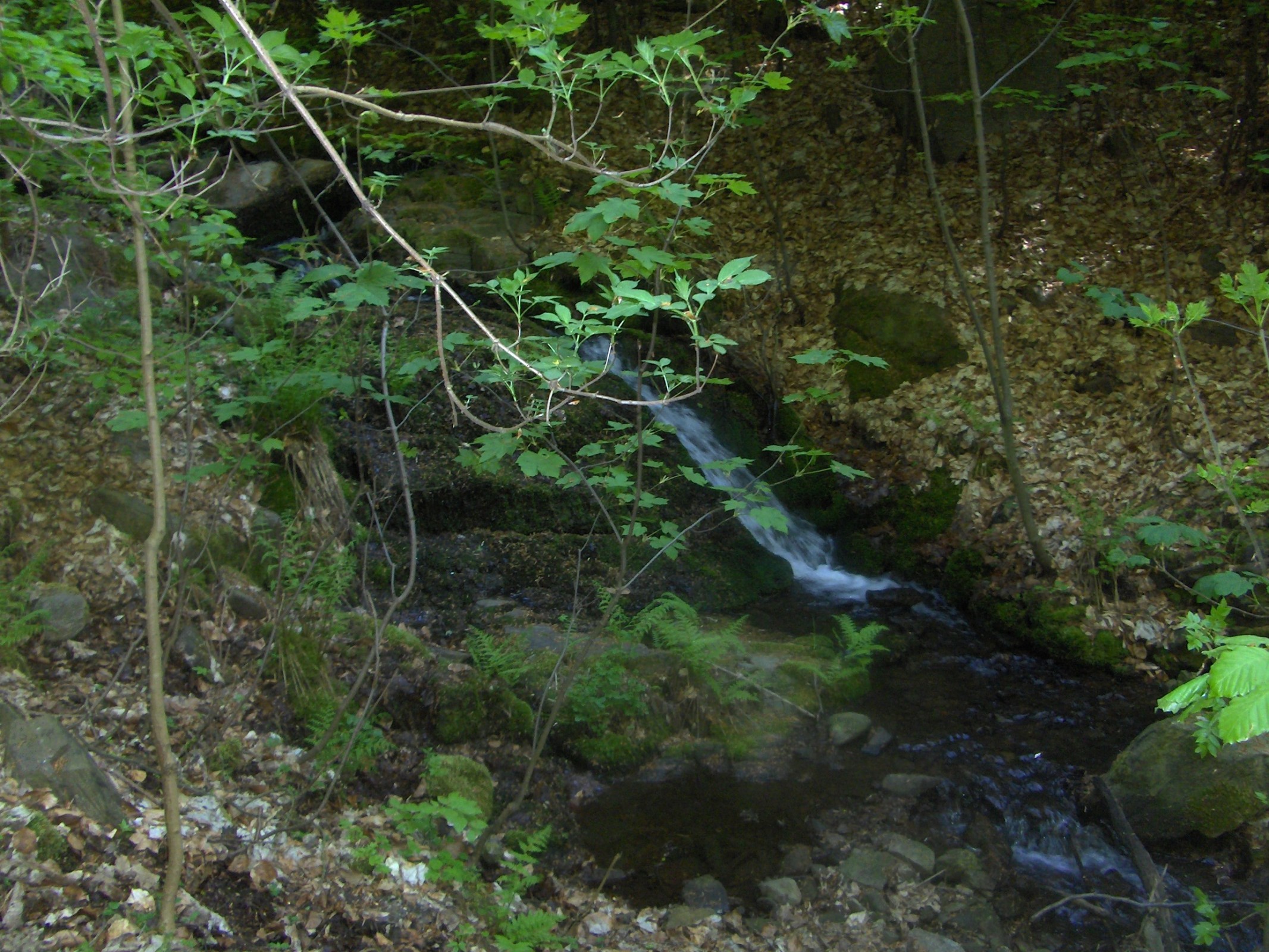 Při cestě na zříceninu hradu Kyšperk jsem si v mapě všiml značky vodopádu na Unčínském potoce. A tak po prohlídce hradu jsem se vrátil zpět k potoku s cílem vodopád najít. Pokud to šlo, tak jsem šel co nejblíže toku potoka. Ten překonával nižší kamenné prahy a mnoho umělých kaskád.