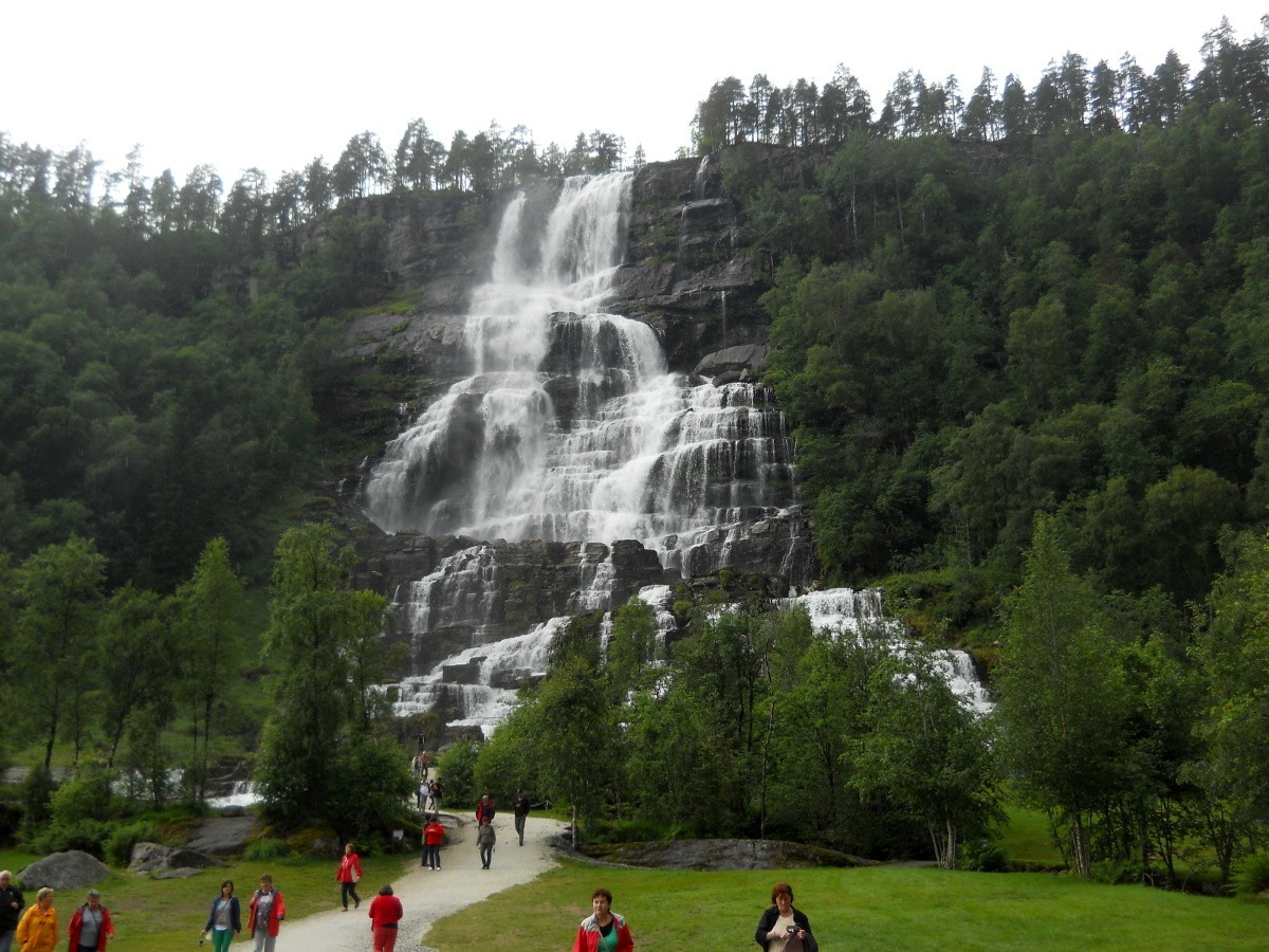 Kaskádovitý Vodopád Tvindefossen se nachází hned u silnice E 16 asi 12 km severně od města Voss. Padá z výšky 150 m a dělí se do několika proudů. Pod vodopádem je postavený kemp.